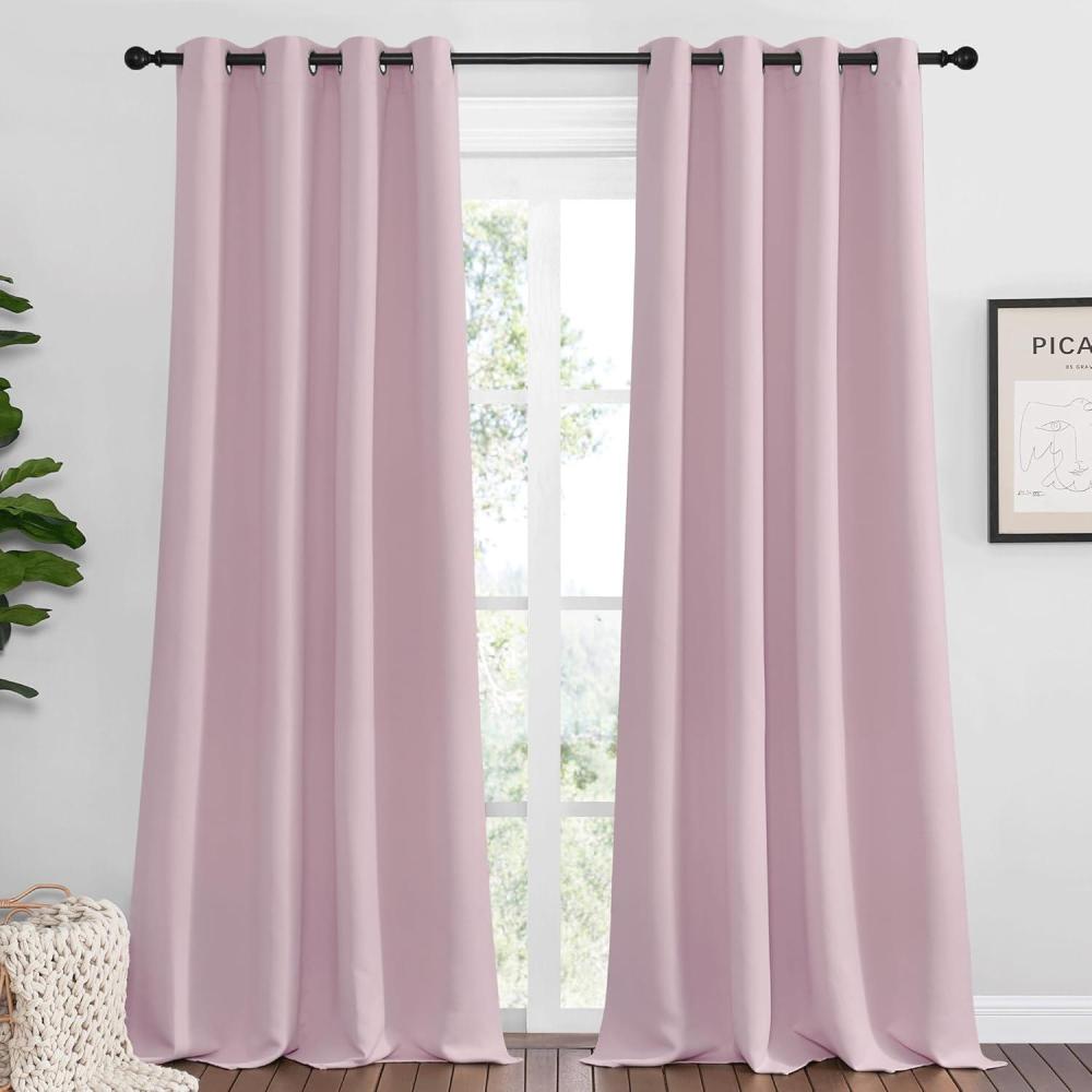 imageNICETOWN Baby Pink Blackout Curtains 96 inches Length for Living Room 2 Panels 55quot Wide Thermal Insulated Long Drapes for Large Window