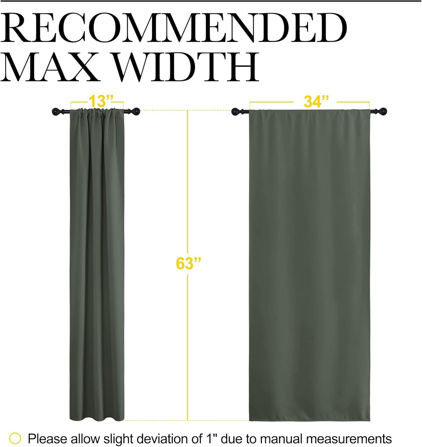 ELEGANT DESIGN: 2 panels per package. Each Blackout Curtain Panel measures 34 inches wide x 63 inches long. The NICETOWN drapery is constructed with rod pocket, fitting the curtain rod of your choice up to 2 inches in diameter, making the curtains easy to install and slide.