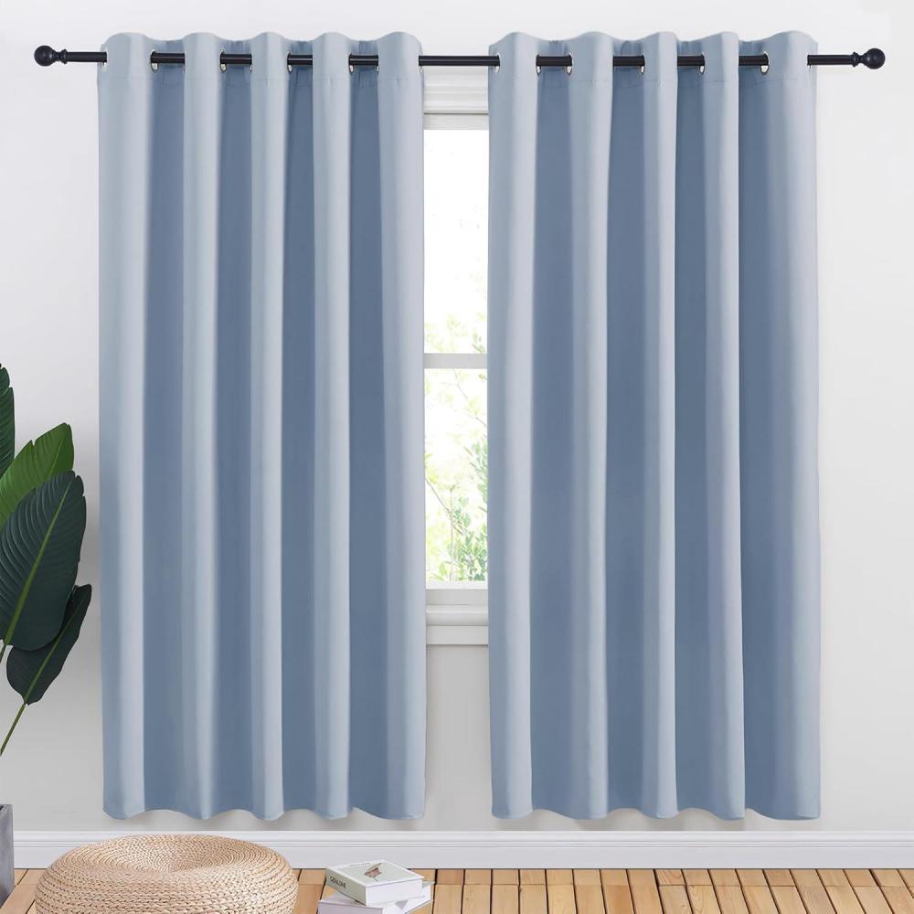 NICETOWN Bedroom Curtains Blackout Drapery Panels, 2 Panels, 70 x 72 inches, Vintage Blue, Three Pass Microfiber Thermal Insulated Solid Ring Top Blackout Window Curtains/Drapes