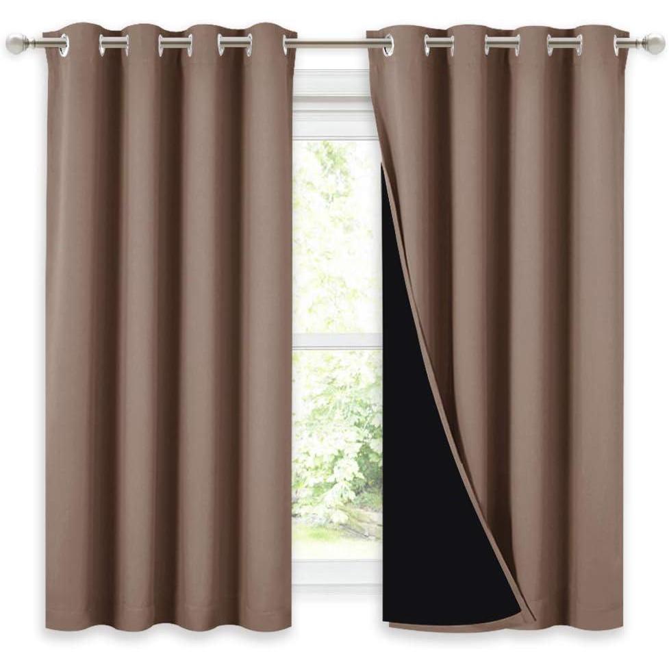 NICETOWN Bedroom Full Blackout Curtain Panels, Super Thick Insulated Window Covers, Keeping Out Cold Air and Heat 100% Blackout Blinds with Black Liner (Cappuccino, Set of 2, 52 by 54-inch)