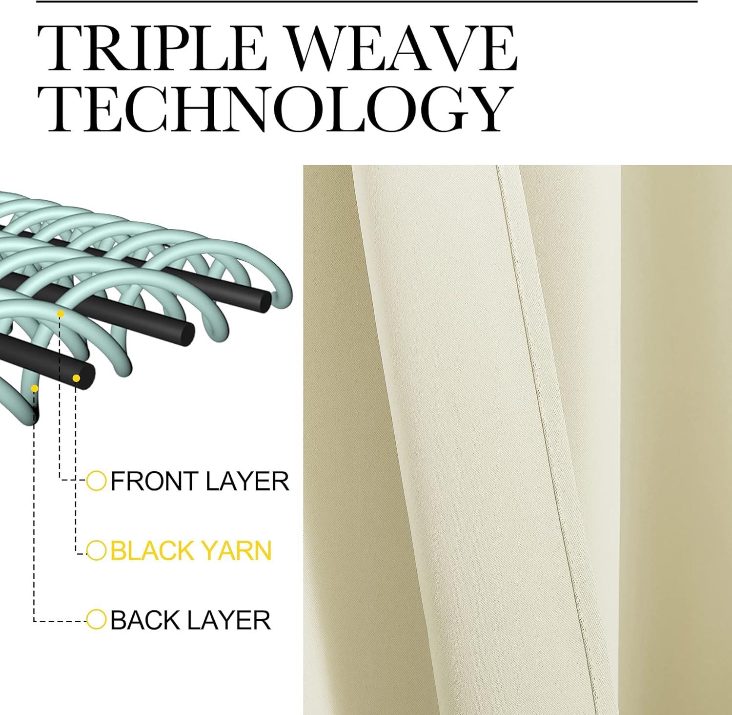 NICE MATERIAL: This smooth, soft and heavy-duty blackout fabric is woven with three-layer construction. The middle layer of black yarns creates a curtain panel that is excellent for blocking out 85%-99% of light (Dark color works better on blocking light) while adding a pop of color to your room.