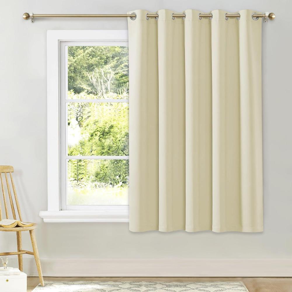 imageNICETOWN Bedroom Window Blackout Curtain Panel Beige 1 Panel 70 x 63 inch Thermal Insulated Blackout DrapeDrapery for Loft Guestroom