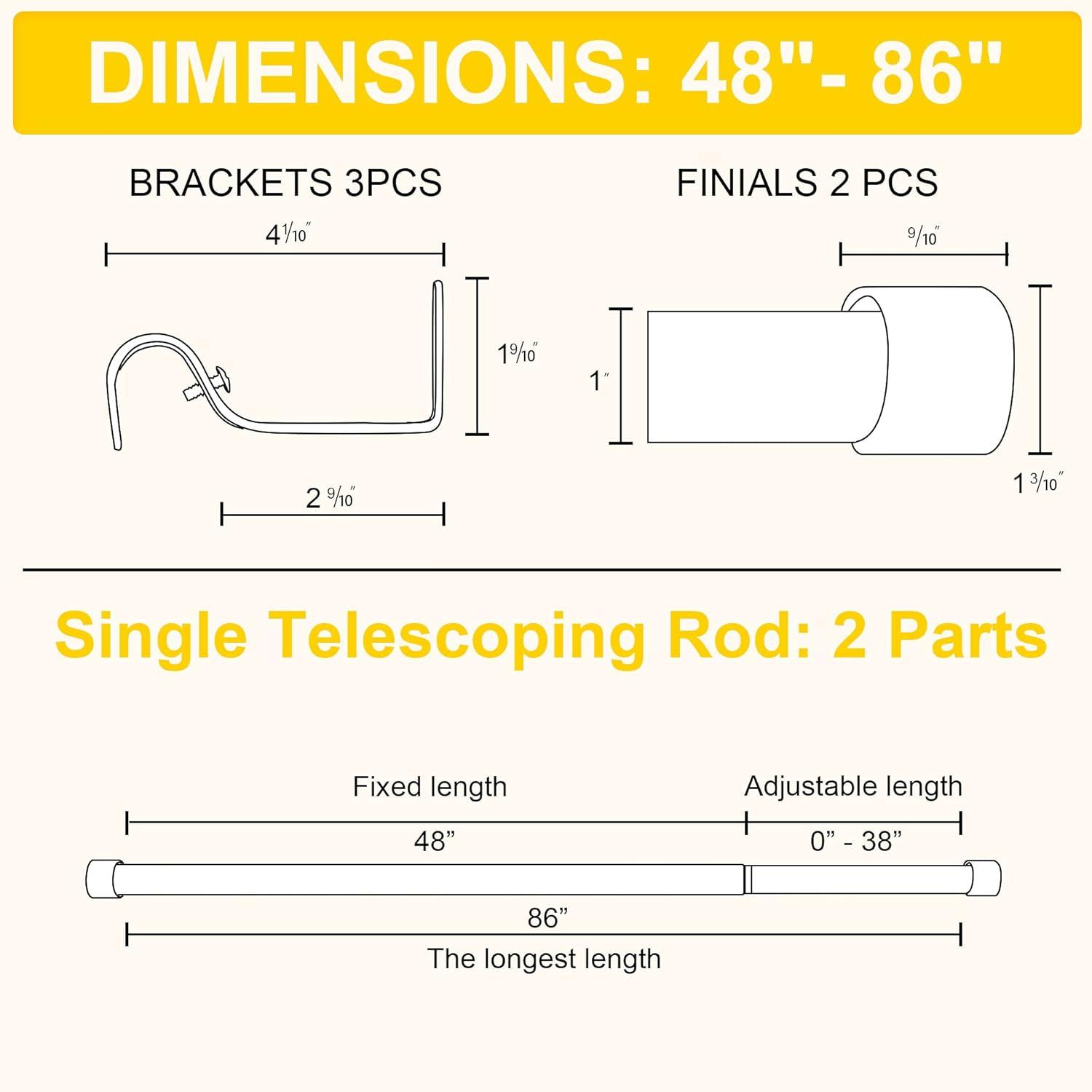 Set Including: Entire set includes the curtain rod, 2 metal finials, 2 brackets, and 4 screws with anchors which are all accessories mounting hardware for easy installation.