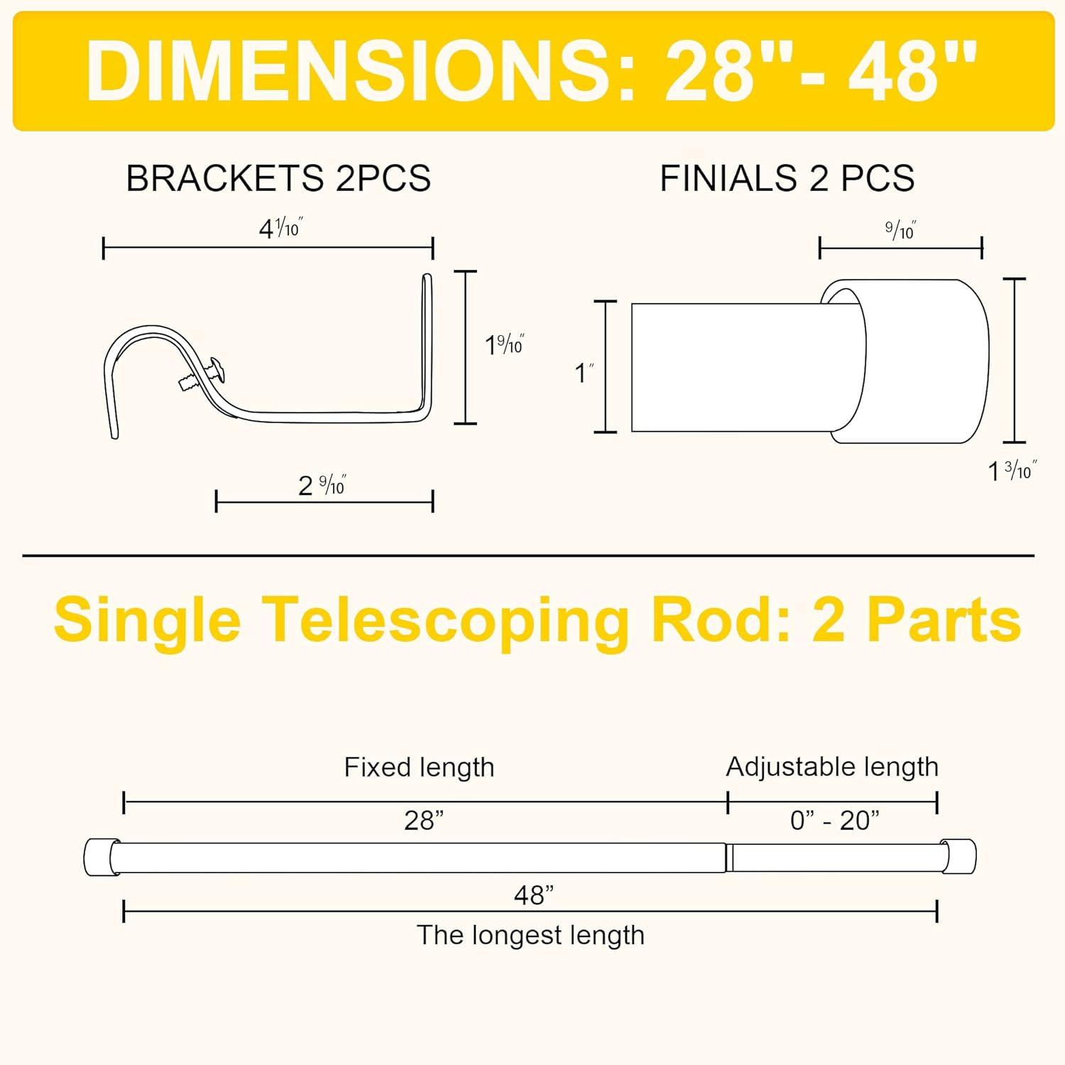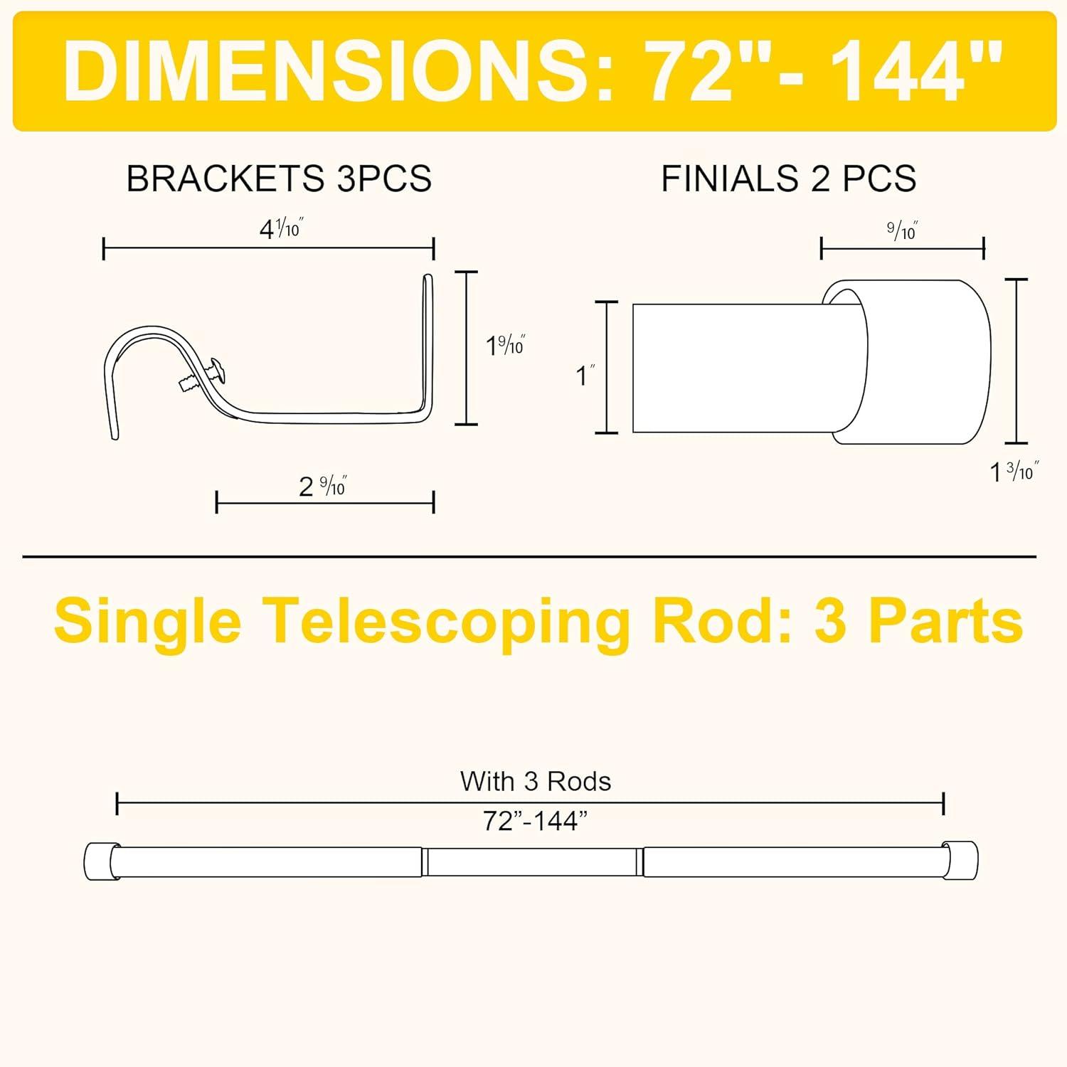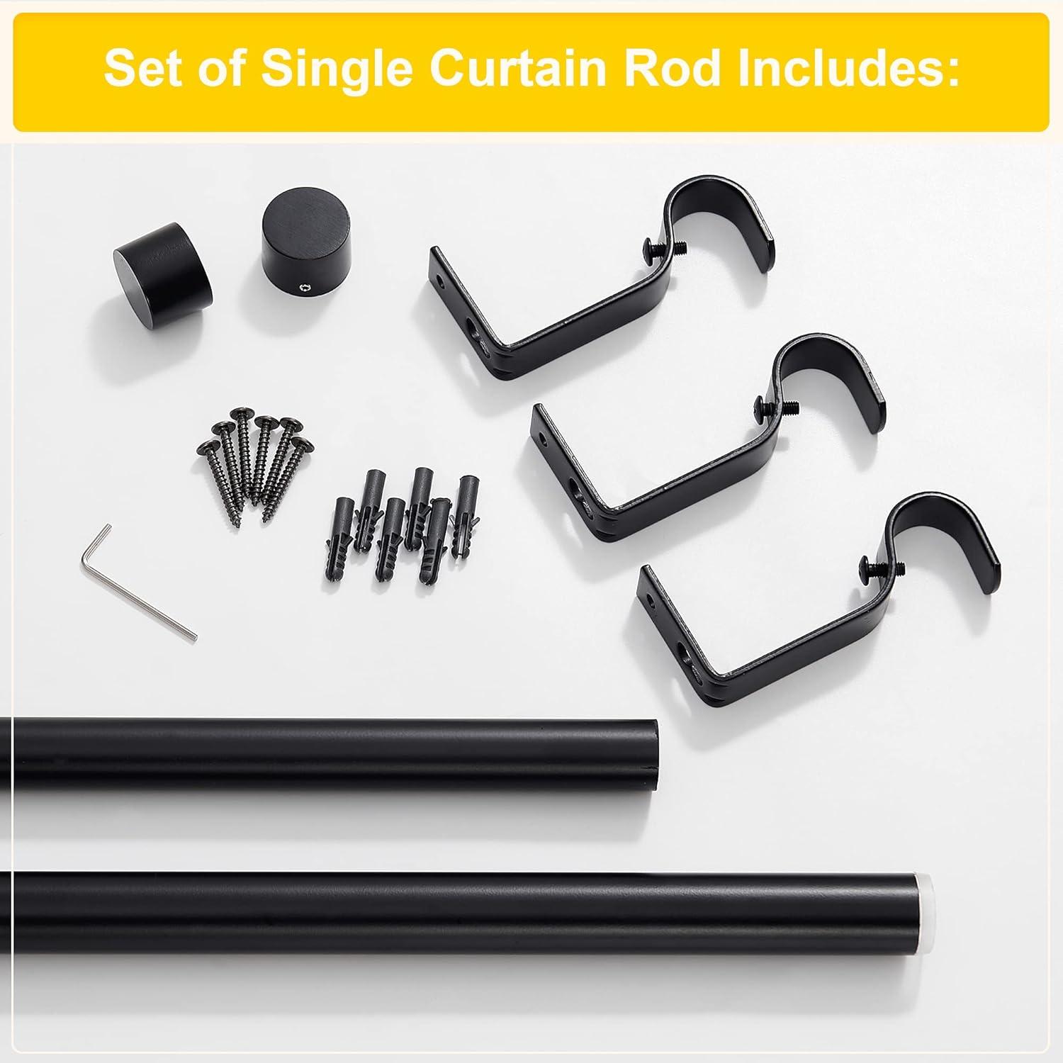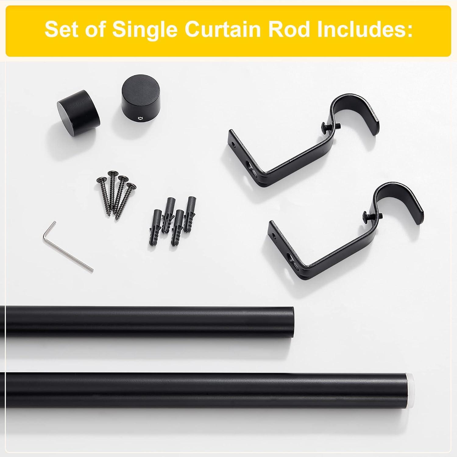 Set Including: Entire set includes the curtain rod, 2 metal finials, 2 brackets, and 4 screws with anchors which are all accessories mounting hardware for easy installation.