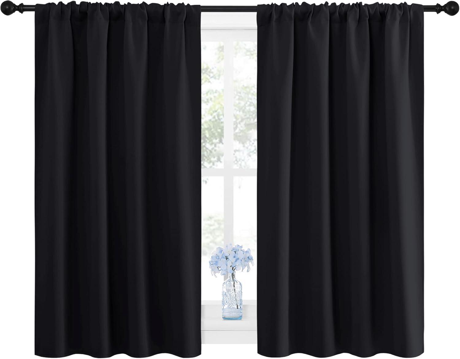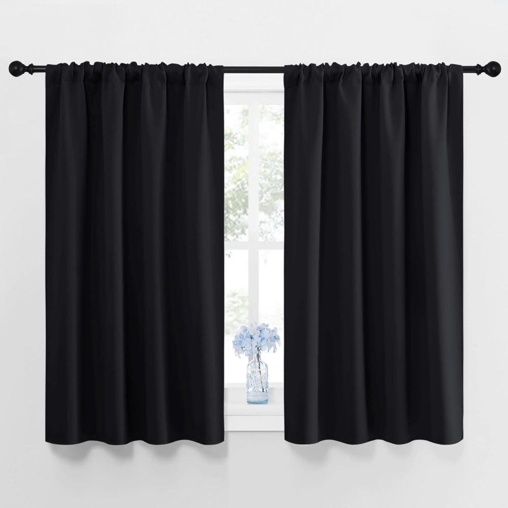 ELEGANT DESIGN: 2 panels per package. Each Blackout Curtain Panel measures 42 inches wide x 48 inches long. The NICETOWN drapery is constructed with rod pocket, fitting the curtain rod of your choice up to 2 inches in diameter, making the curtains easy to install and slide.