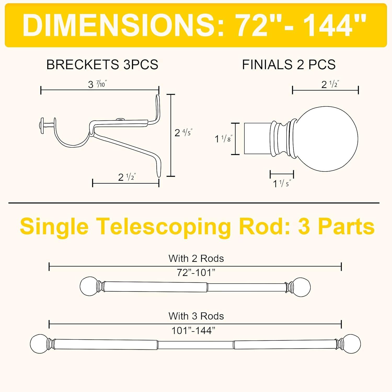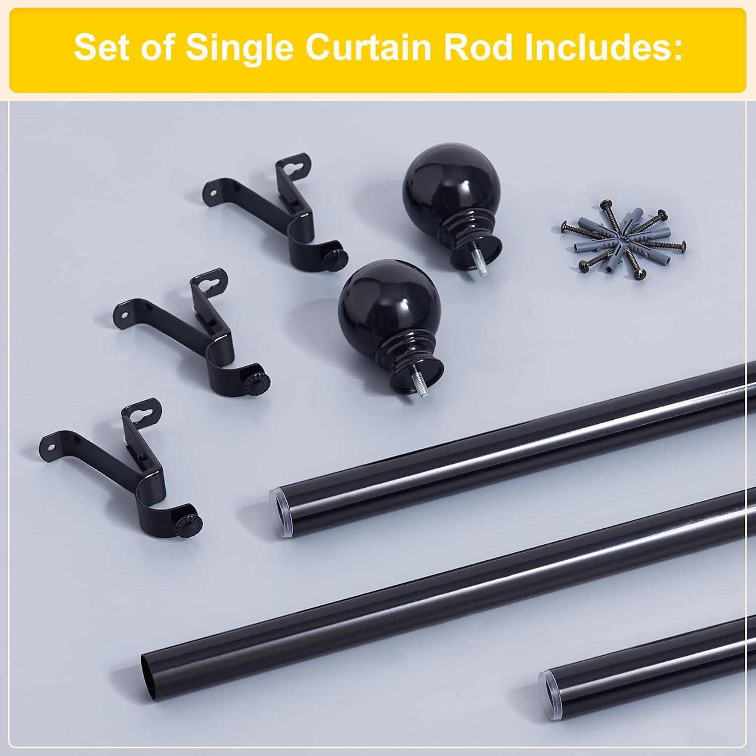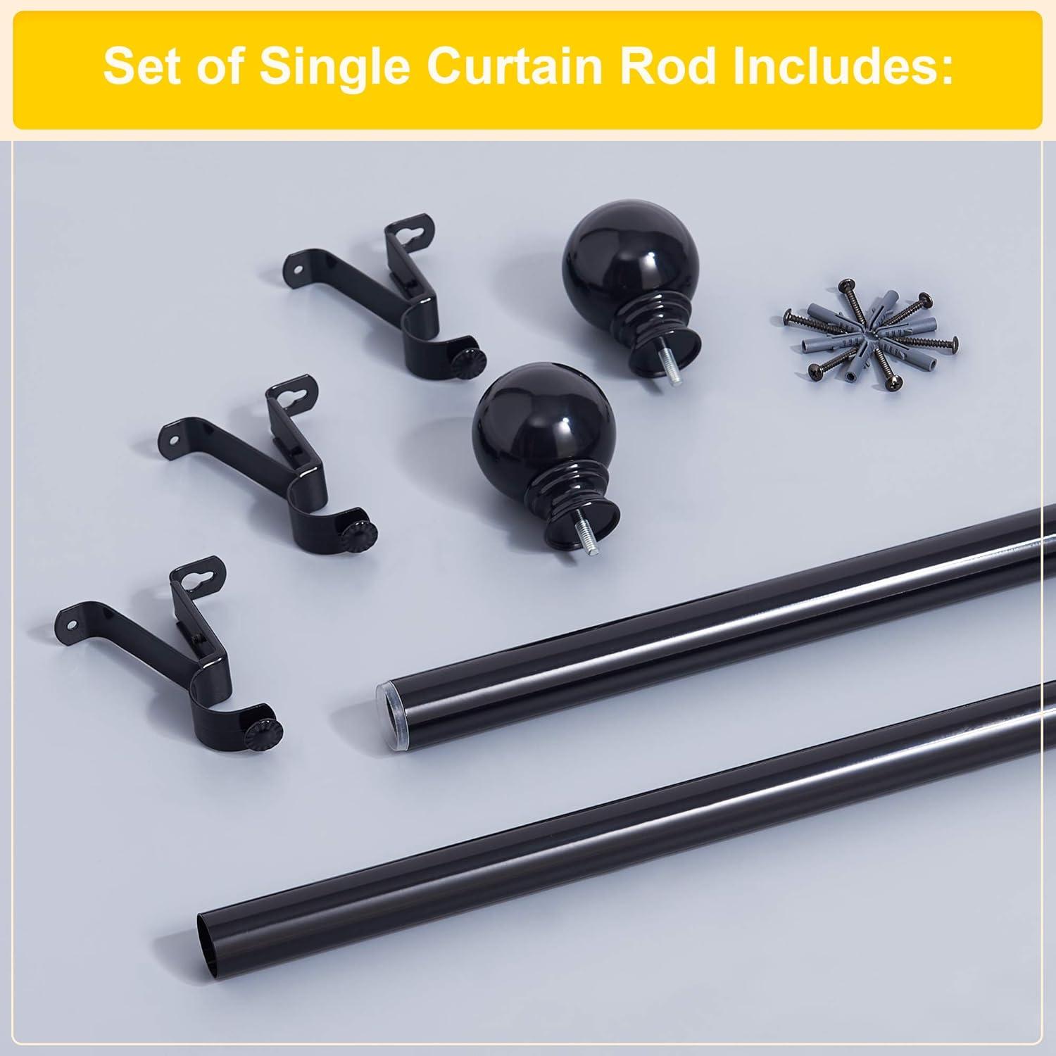 Set Including: Entire set includes the curtain rod, 2 metal finials, 3 brackets, and 6 screws with anchors which are all accessories mounting hardware for easy installation.