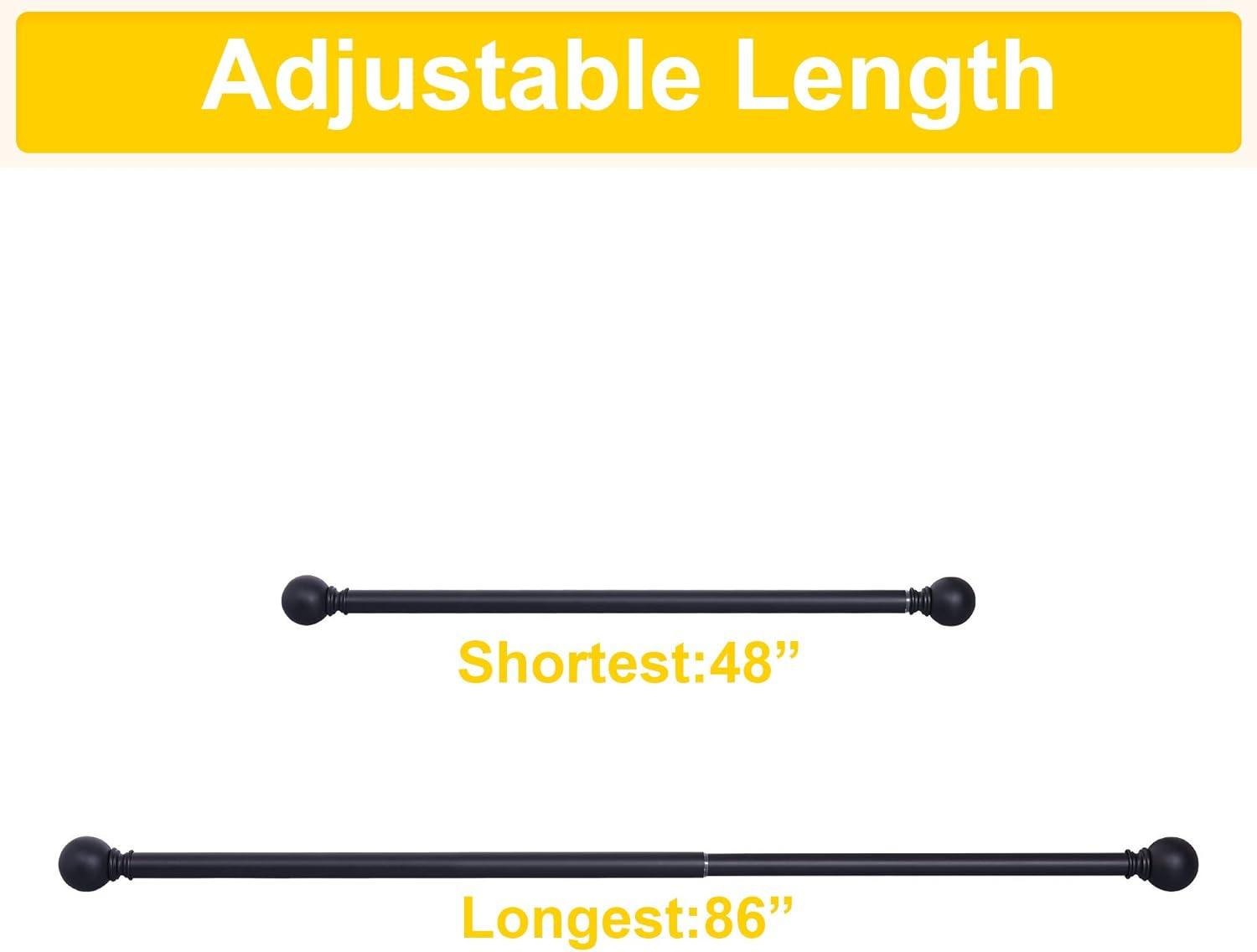 imageNICETOWN Black Curtain Rods for Window 48 to 86 inch 1 18 Diameter with Ball Finials for Window Treatment Adjustable Length from 48 to 86Inch Matte BlackMatte Black