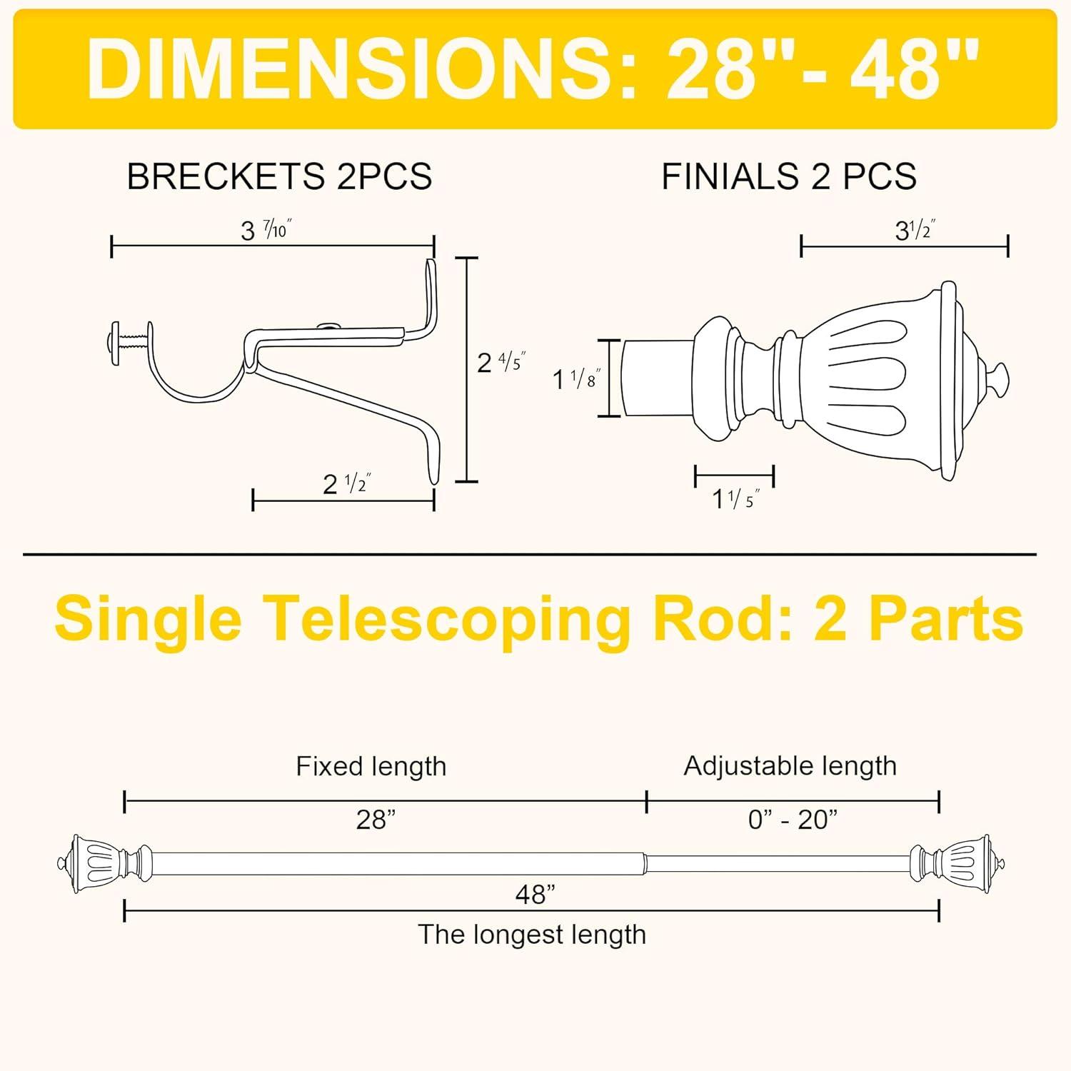 Set Including: Entire set includes the curtain rod, 2 metal finials, 3 brackets, and 6 screws with anchors which are all accessories mounting hardware for easy installation.