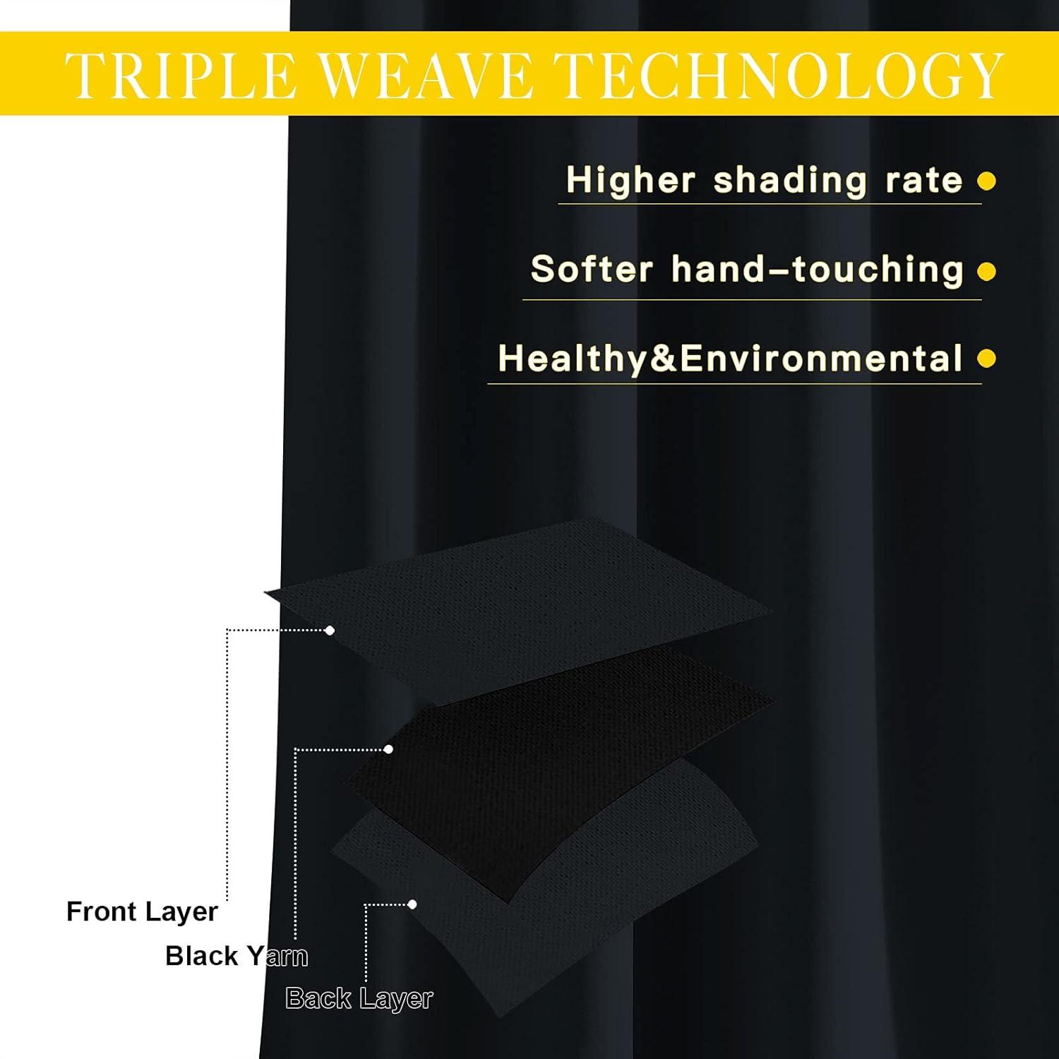 AMAZING MATERIAL: This unique, soft, and heavy-duty blackout fabric is woven with three-layer construction. The middle layer of black yarns creates a curtain panel that is excellent for blocking out 85%-99% of light (Dark color works better on blocking light) while providing privacy.