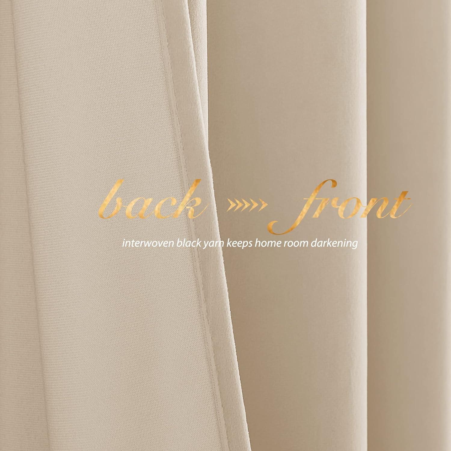 imageNICETOWN Black Velvet Blackout Curtains Patio Panels 96 inch Long Media Movie Theater Room Decor Energy  Efficient Velvet Woven Home Theater Eyelet Top Drapes for Living Room 1 Pair W52xL96Beige