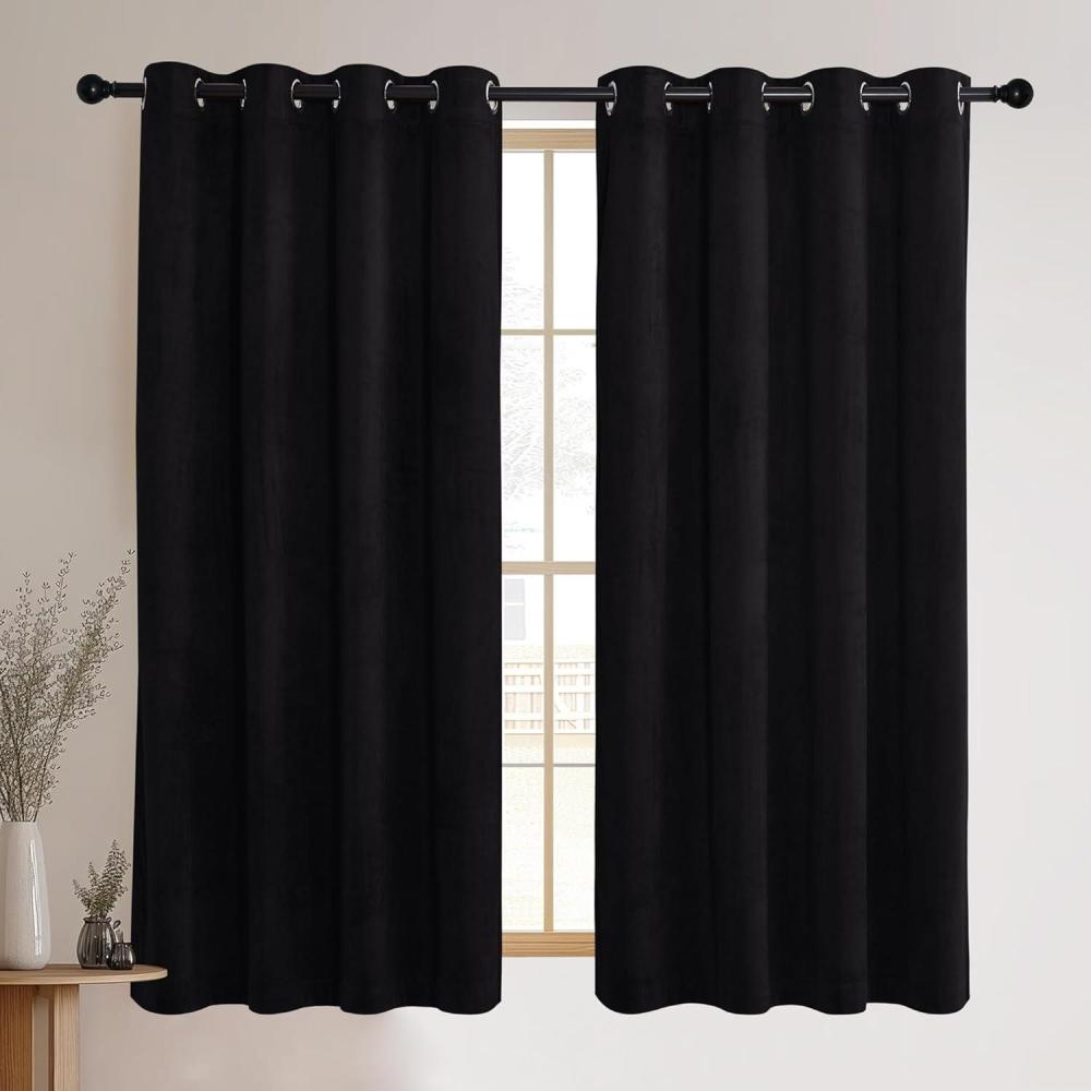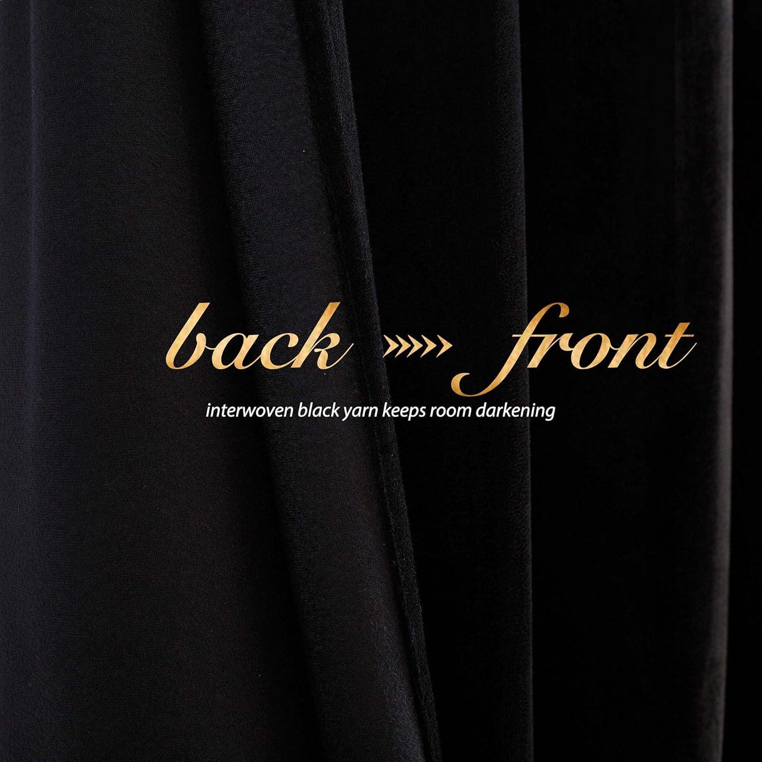 imageNICETOWN Black Velvet Blackout Curtains Patio Panels 96 inch Long Media Movie Theater Room Decor Energy  Efficient Velvet Woven Home Theater Eyelet Top Drapes for Living Room 1 Pair W52xL96Black
