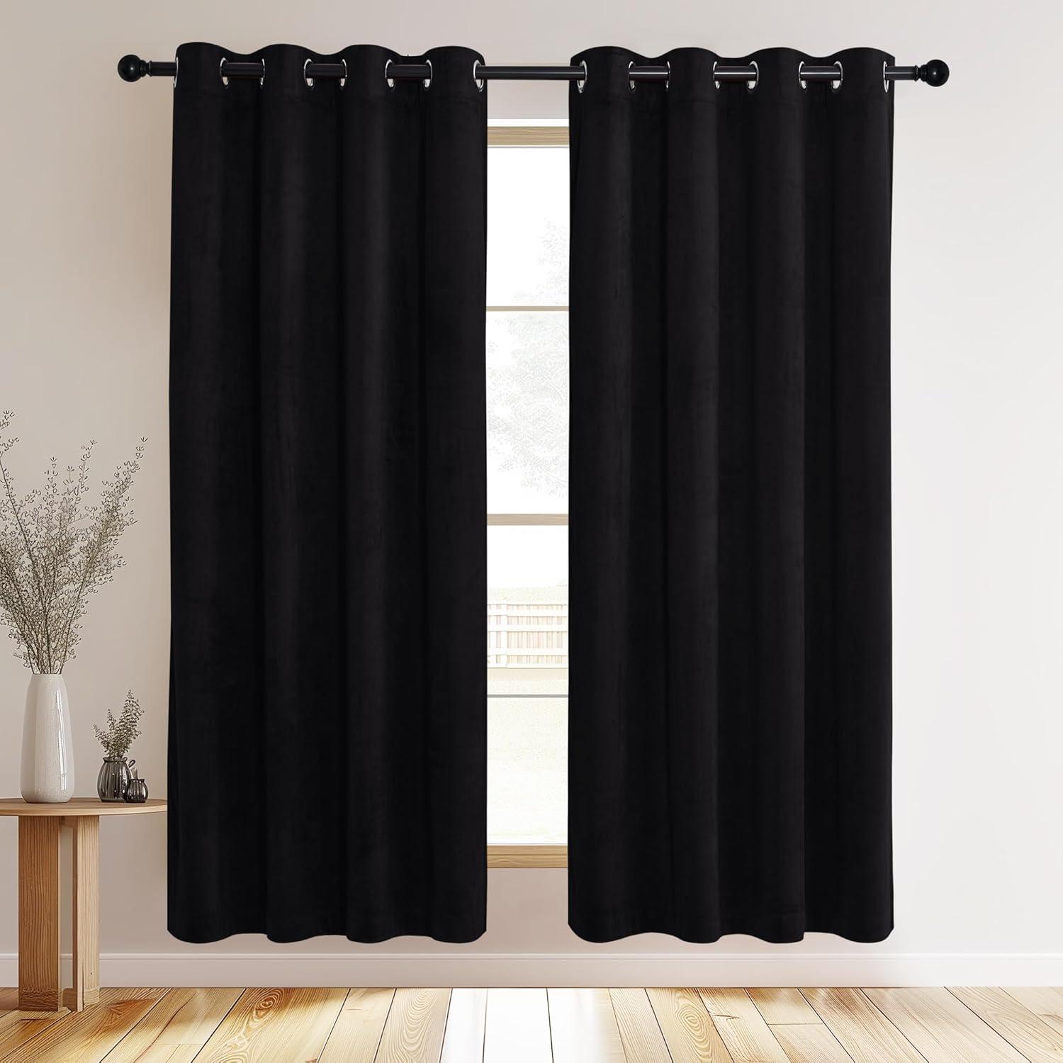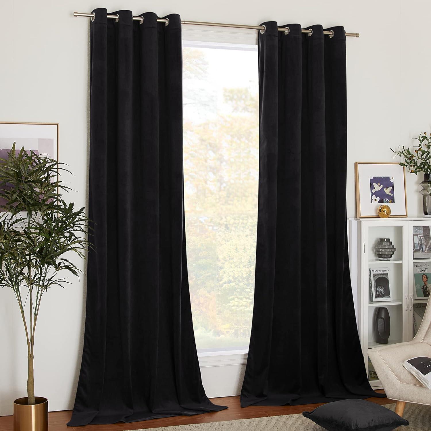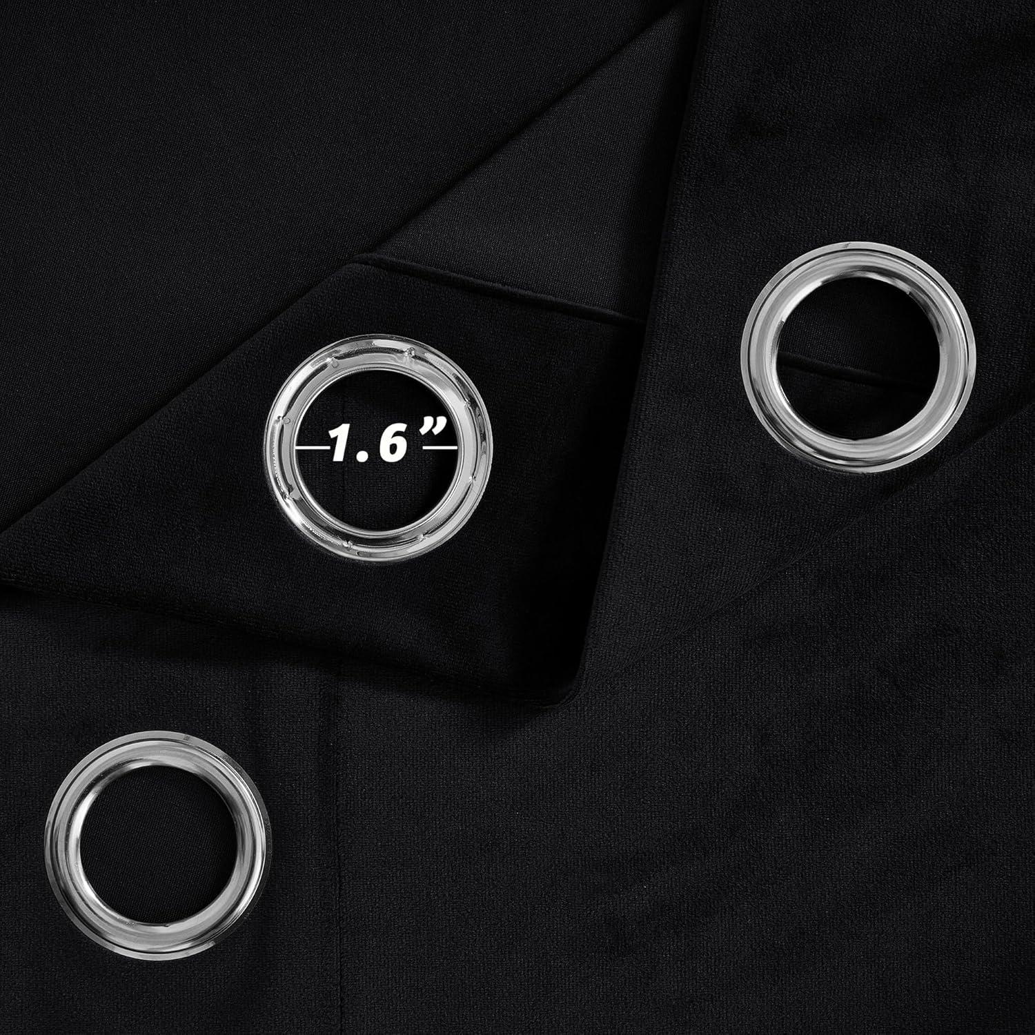 NICETOWN Black Velvet Blackout Curtains Patio Panels 96 inch Long, Media Movie Theater Room Decor, Energy - Efficient Velvet Woven Home Theater Eyelet Top Drapes for Living Room (1 Pair, W52xL96)(Black)