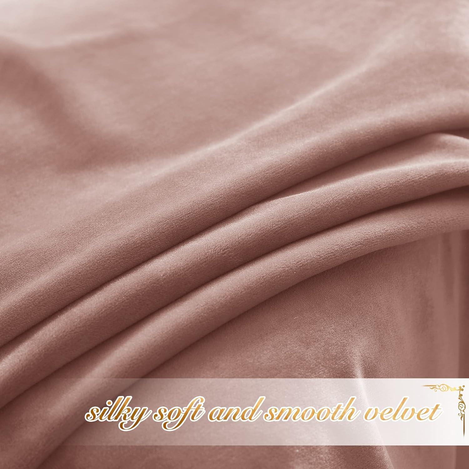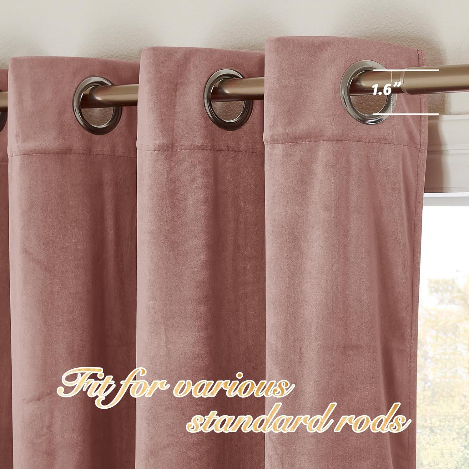 NICETOWN Black Velvet Blackout Curtains Patio Panels 96 inch Long, Media Movie Theater Room Decor, Energy - Efficient Velvet Woven Home Theater Eyelet Top Drapes for Living Room (1 Pair, W52xL96)(Dusty Pink)