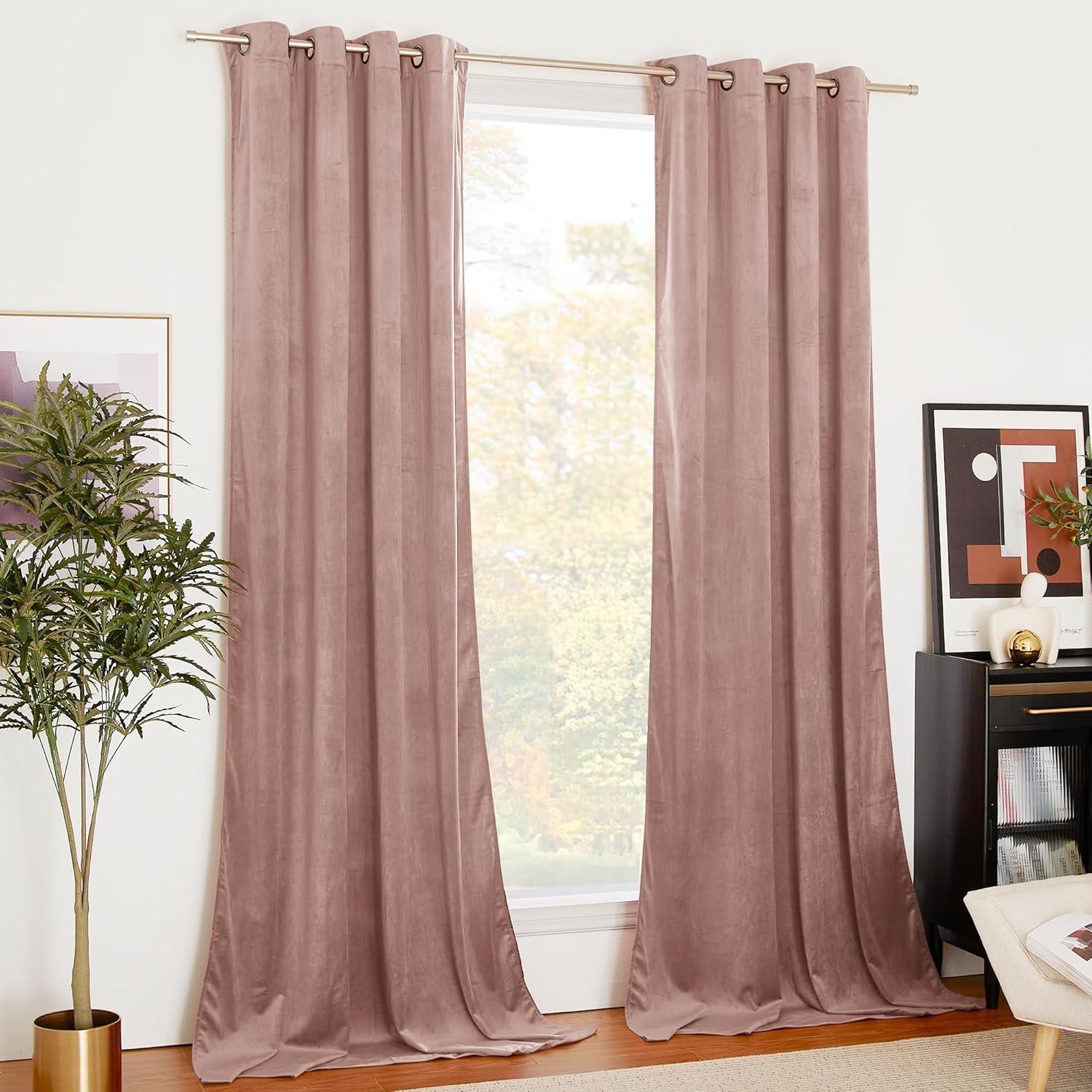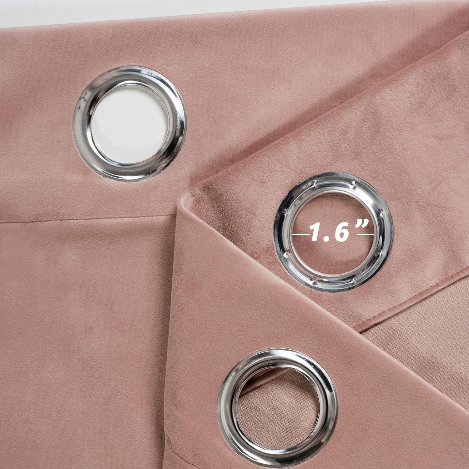 NICETOWN Black Velvet Blackout Curtains Patio Panels 96 inch Long, Media Movie Theater Room Decor, Energy – Efficient Velvet Woven Home Theater Eyelet Top Drapes for Living Room (1 Pair, W52xL96)(Dusty Pink)