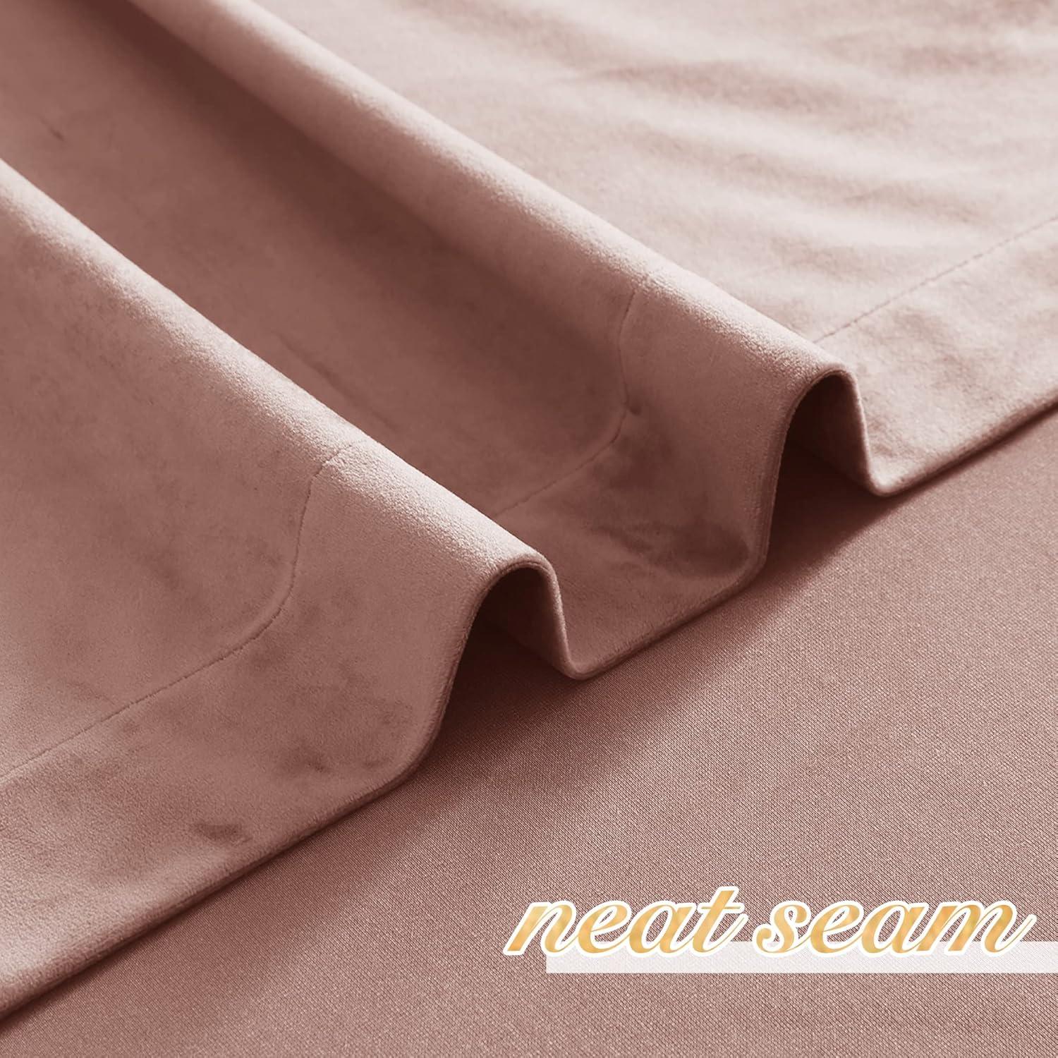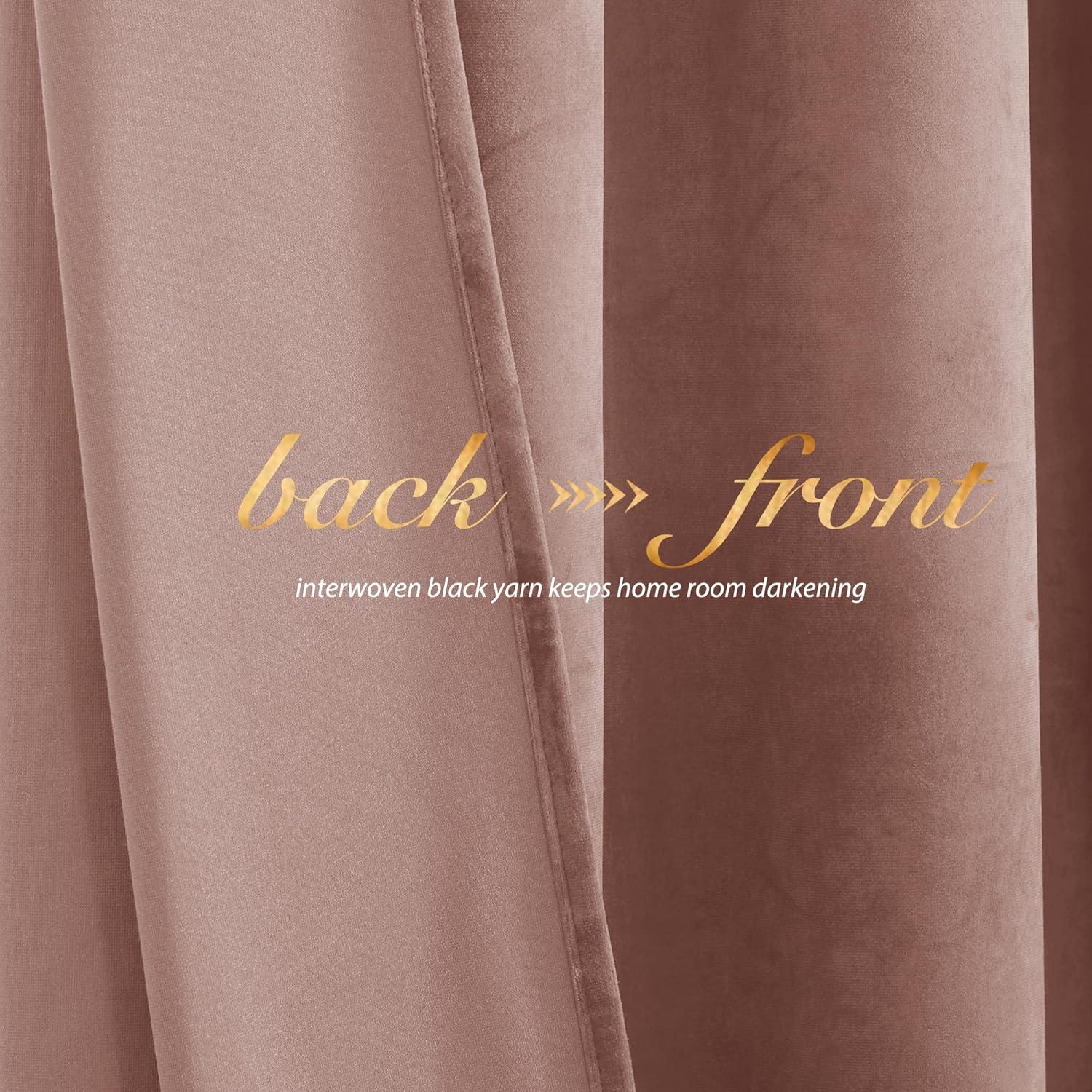 imageNICETOWN Black Velvet Blackout Curtains Patio Panels 96 inch Long Media Movie Theater Room Decor Energy  Efficient Velvet Woven Home Theater Eyelet Top Drapes for Living Room 1 Pair W52xL96Dusty Pink