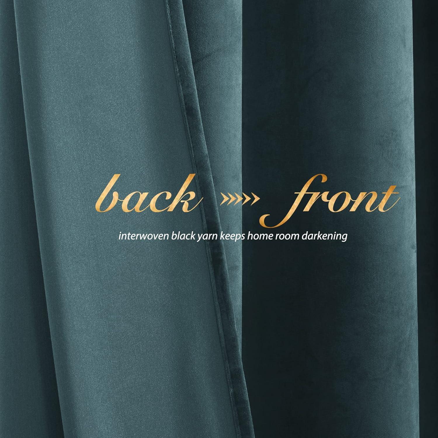 imageNICETOWN Black Velvet Blackout Curtains Patio Panels 96 inch Long Media Movie Theater Room Decor Energy  Efficient Velvet Woven Home Theater Eyelet Top Drapes for Living Room 1 Pair W52xL96Greyish Blue
