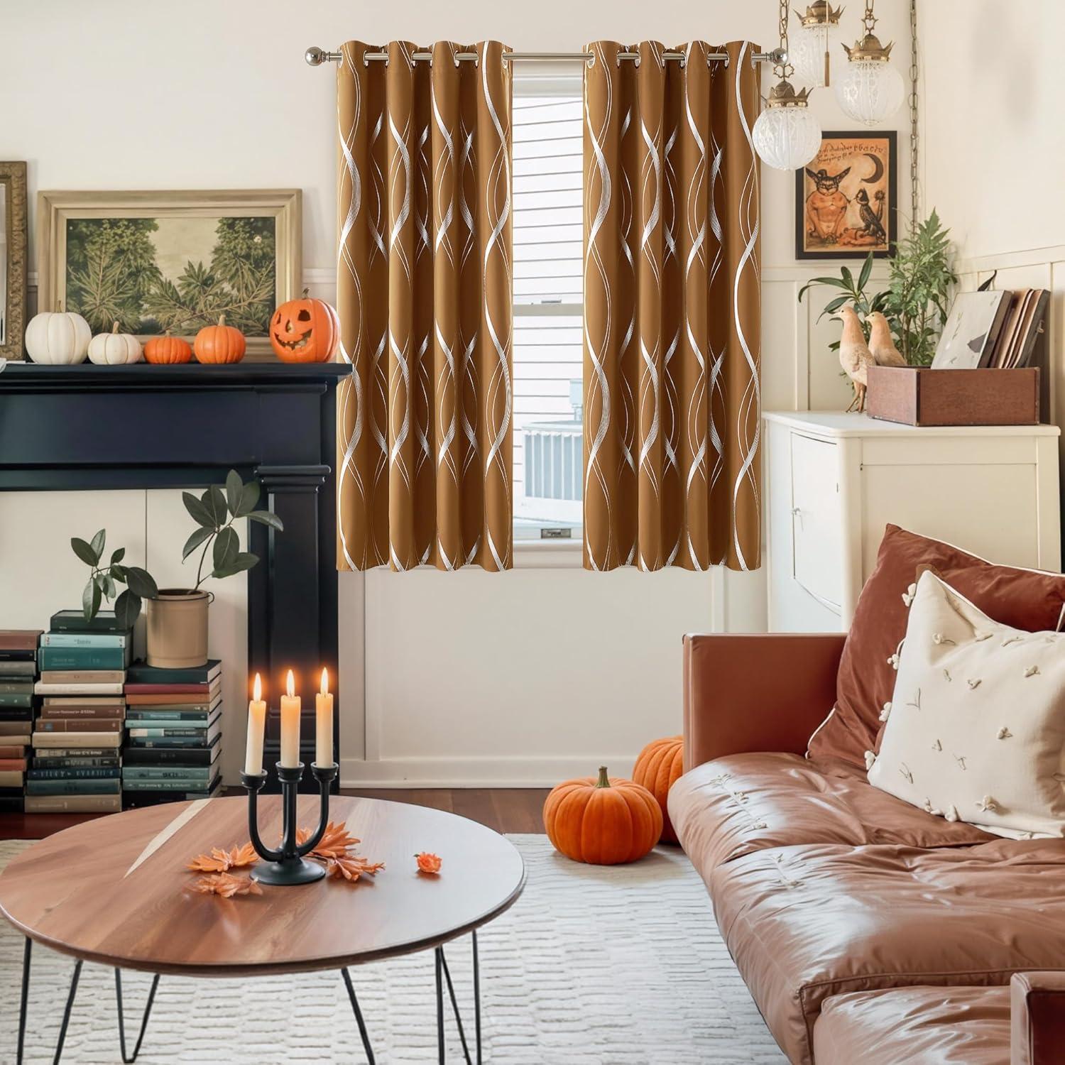 NICETOWN Blackout Curtain Panels 72 inches – Light Reducing Thermal Insulated Solid Grommet Blackout Curtains/Panels/Drapes for Living Room/Nursery/Kids Room (Set of 2, 52 inches by 72 Inch, Black)(1 – Gold Brown)