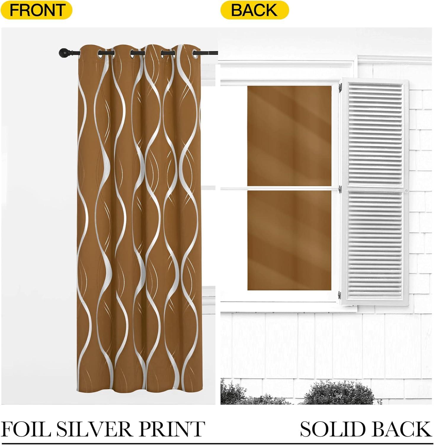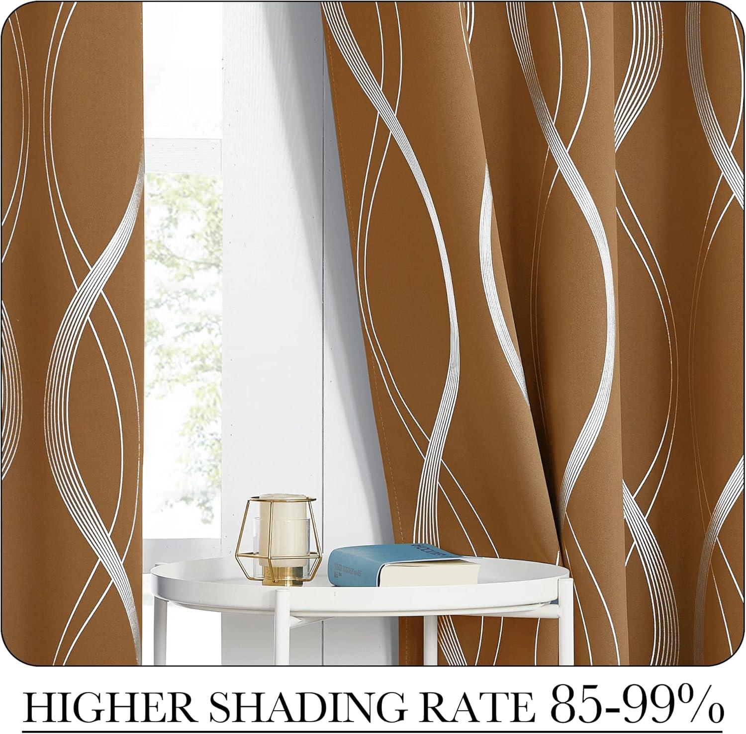 NICETOWN Blackout Curtain Panels 72 inches - Light Reducing Thermal Insulated Solid Grommet Blackout Curtains/Panels/Drapes for Living Room/Nursery/Kids Room (Set of 2, 52 inches by 72 Inch, Black)(1 - Gold Brown)