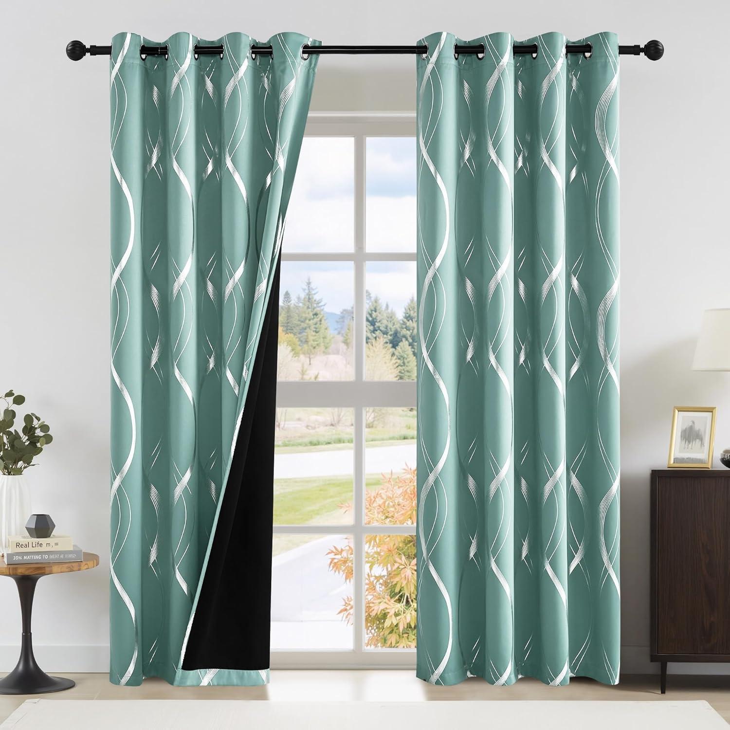 NICETOWN Blackout Curtain Panels 72 inches – Light Reducing Thermal Insulated Solid Grommet Blackout Curtains/Panels/Drapes for Living Room/Nursery/Kids Room (Set of 2, 52 inches by 72 Inch, Black)(100% Blackout – Aqua Blue)