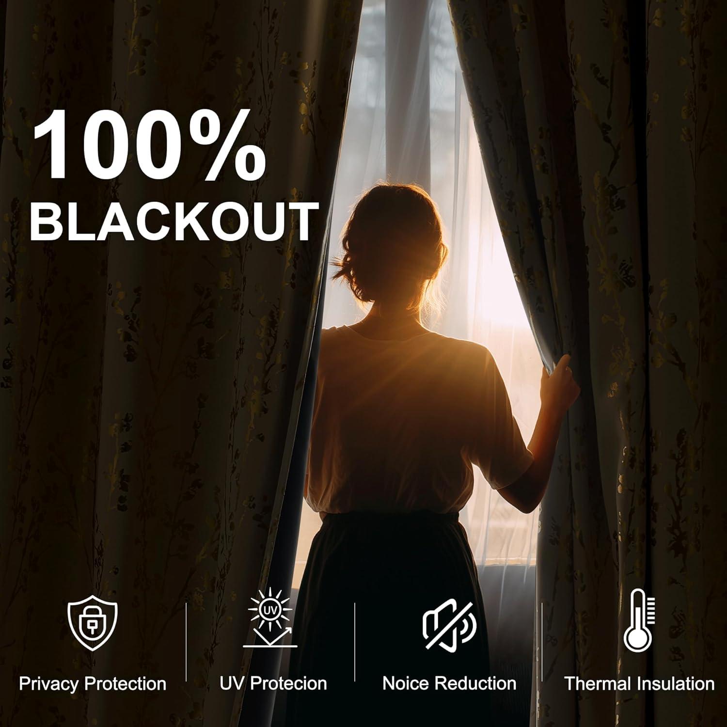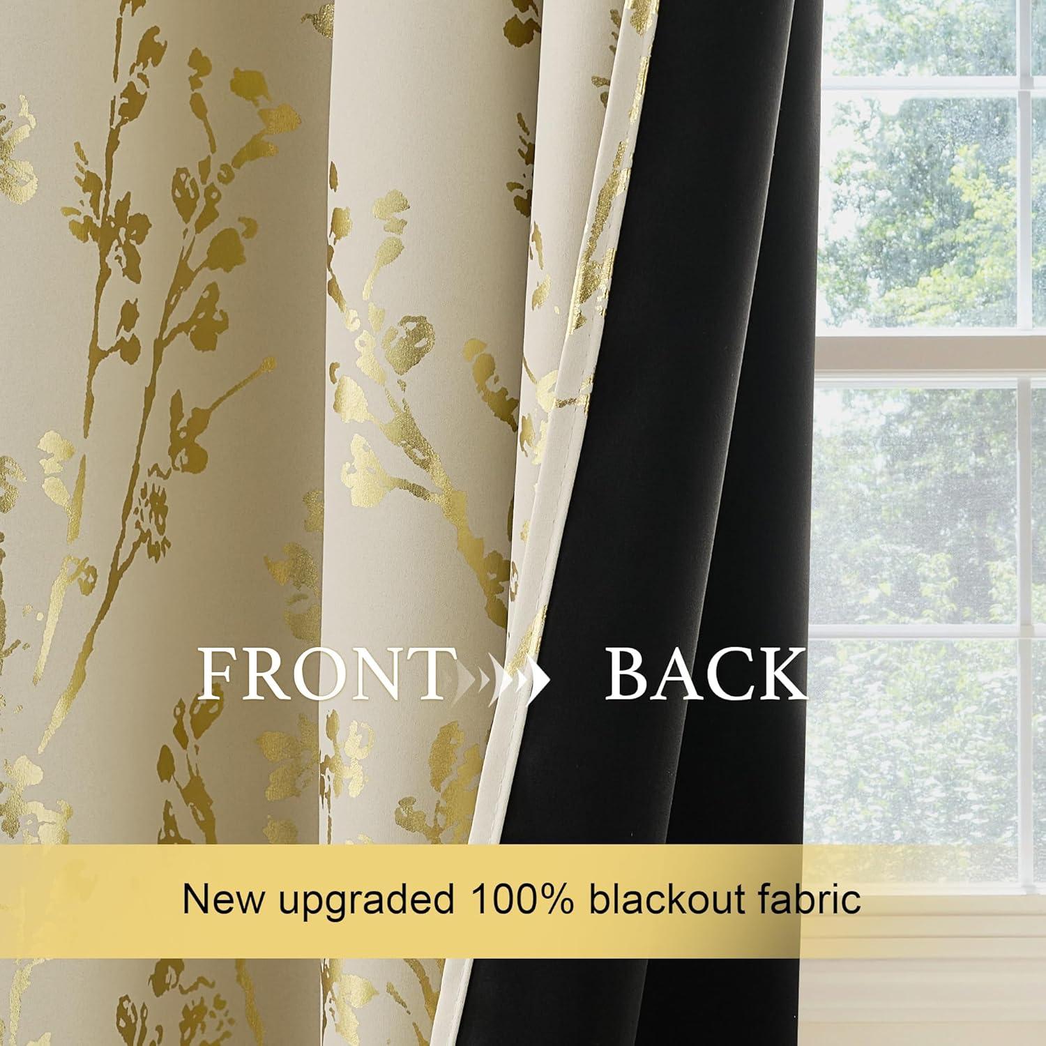 NICETOWN Blackout Curtain Panels 72 inches – Light Reducing Thermal Insulated Solid Grommet Blackout Curtains/Panels/Drapes for Living Room/Nursery/Kids Room (Set of 2, 52 inches by 72 Inch, Black)(Branch-100% Blackout Beige)