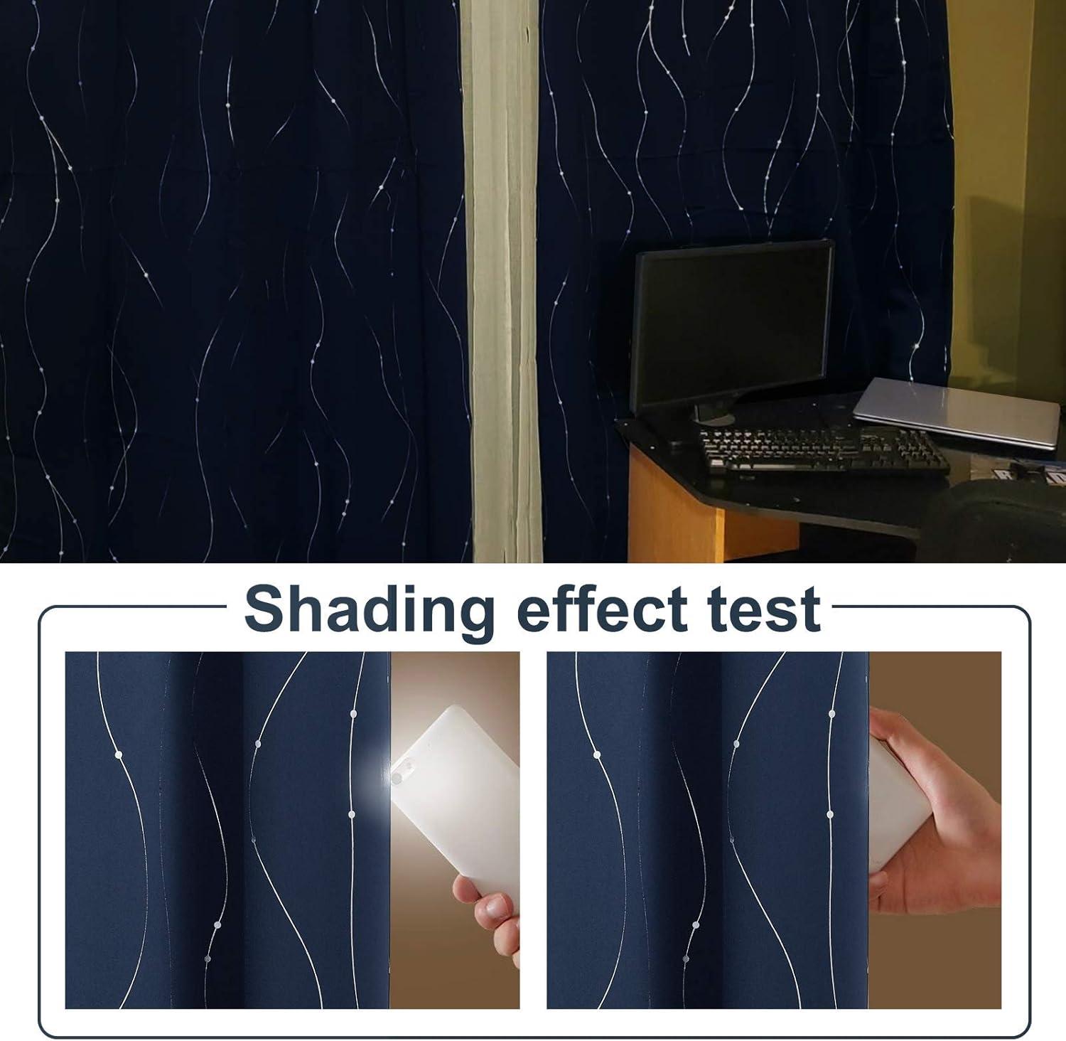 NICETOWN Blackout Curtain Panels 72 inches - Light Reducing Thermal Insulated Solid Grommet Blackout Curtains/Panels/Drapes for Living Room/Nursery/Kids Room (Set of 2, 52 inches by 72 Inch, Black)(Navy)