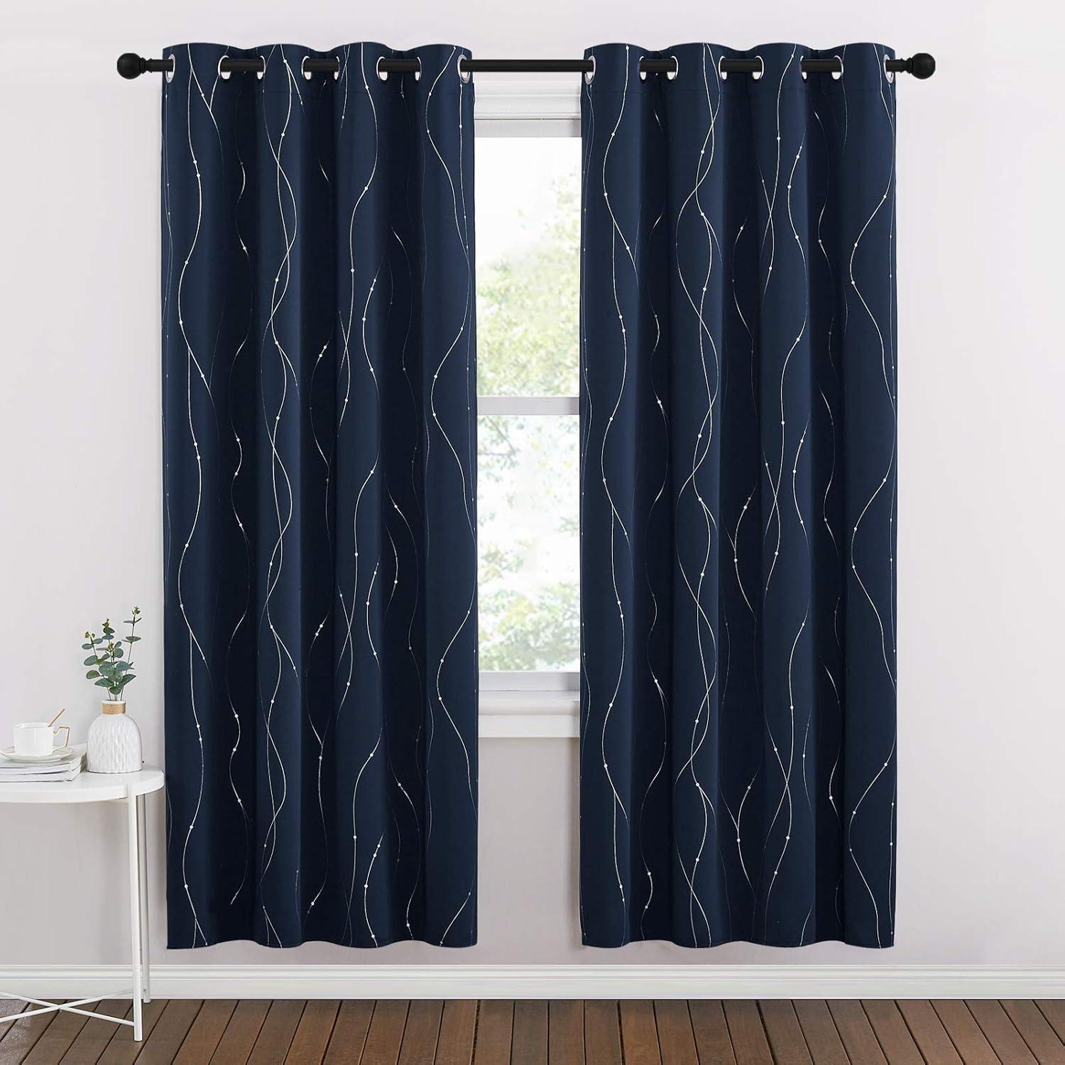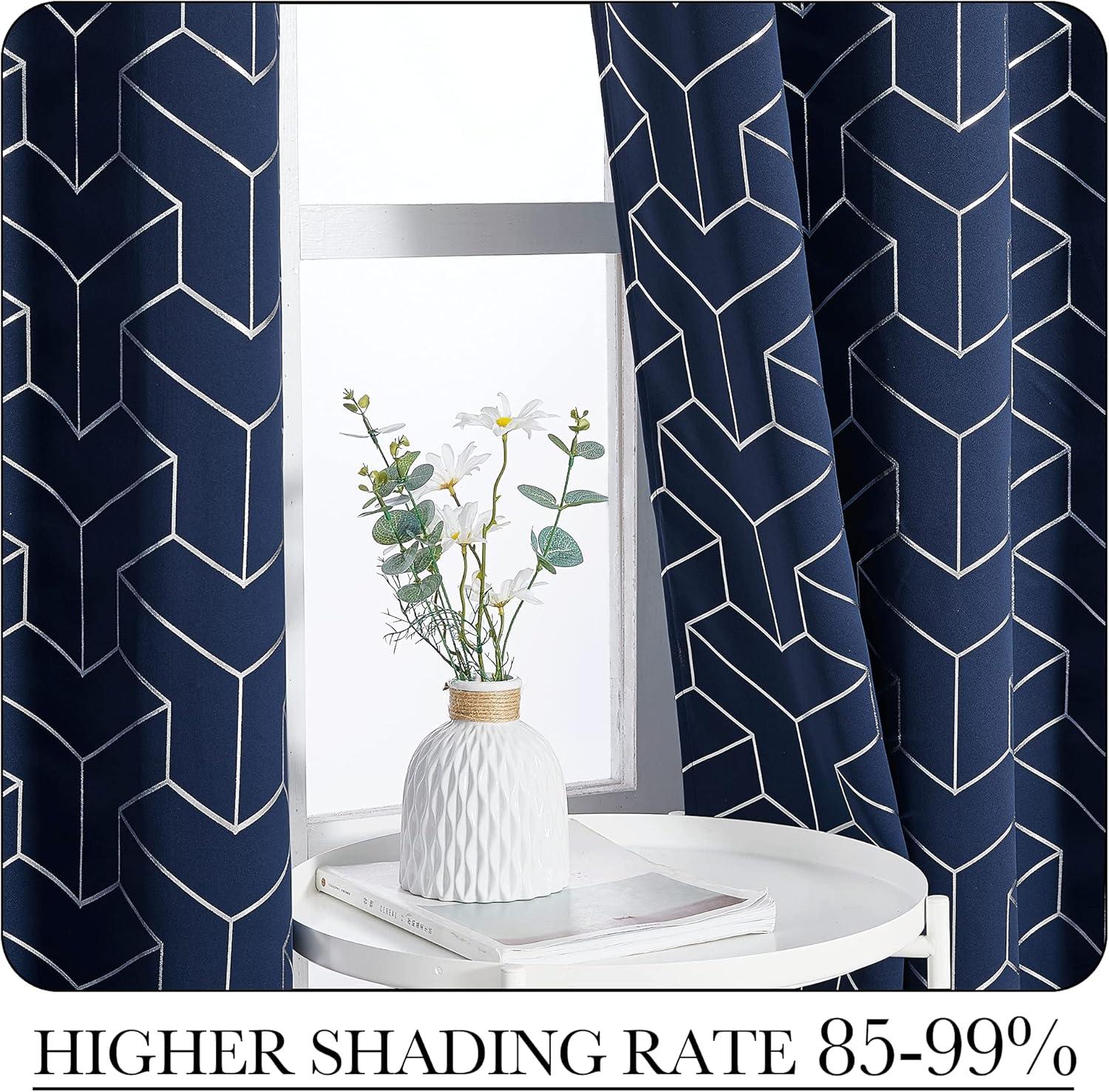 NICETOWN Blackout Curtain Panels 72 inches – Light Reducing Thermal Insulated Solid Grommet Blackout Curtains/Panels/Drapes for Living Room/Nursery/Kids Room (Set of 2, 52 inches by 72 Inch, Black)(Navy)