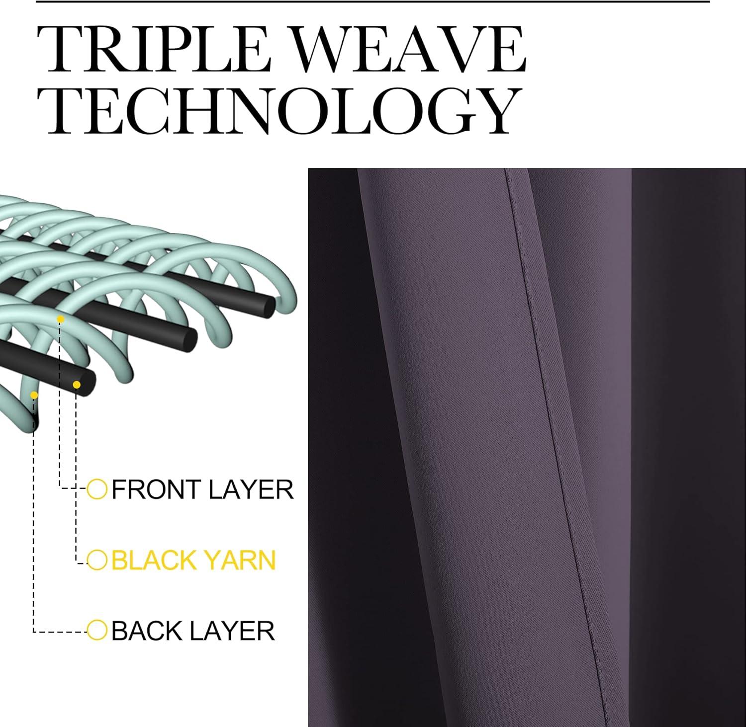 AMAZING MATERIAL: Super heavy and soft Blackout Curtain Panels are very upmarket. Besides, 85%-99% light blocking, thermal insulated, soundproof, Fade-resistant, energy-efficient. Thread trimmed and wrinkle-free, both sides are the same color.