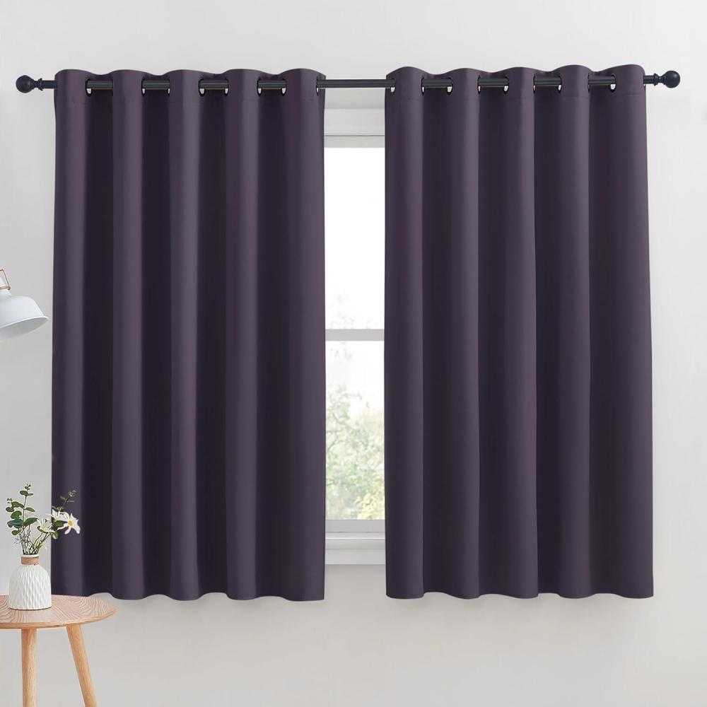 NICETOWN Blackout Curtain Panels for Bedroom, Greyish Purple, 2 Panels, W70 x L63-inch, Grey, Thermal Insulated Grommet Top Blackout Draperies and Drapes for Basement