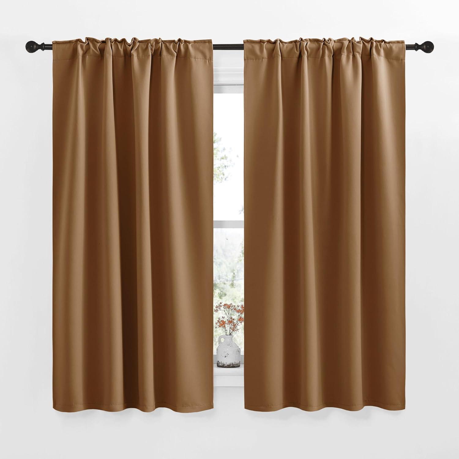 NICETOWN Blackout Curtain Panels for Living Room – (Gold Brown Color) 34×63 Inch, 2 Panels Set, Thermal Insulated Room Darkening Blackout Drapes/Draperies with Rod Pocket & Back Tab for Window