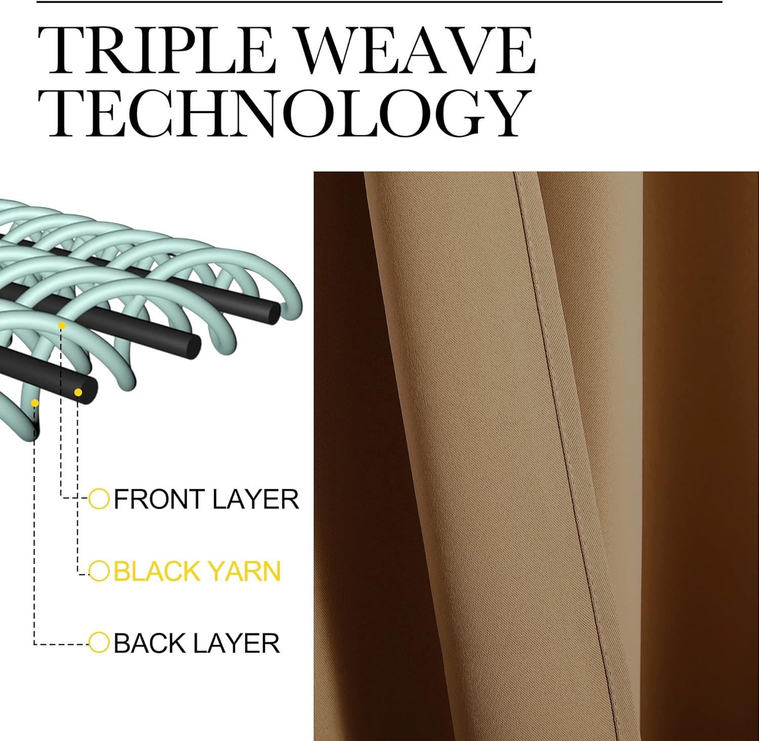 AMAZING FABRIC: The blackout curtain's fabric is super soft and heavy innovative triple-weave polyester fabric. Suitable perfectly for: kitchen, bedroom, living room and any small windows. Same material back as of front makes panels more elegant.