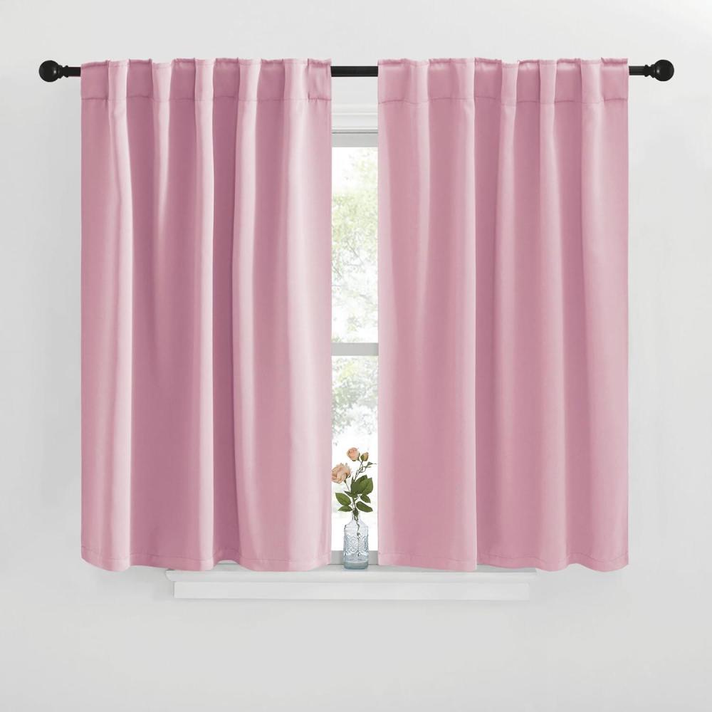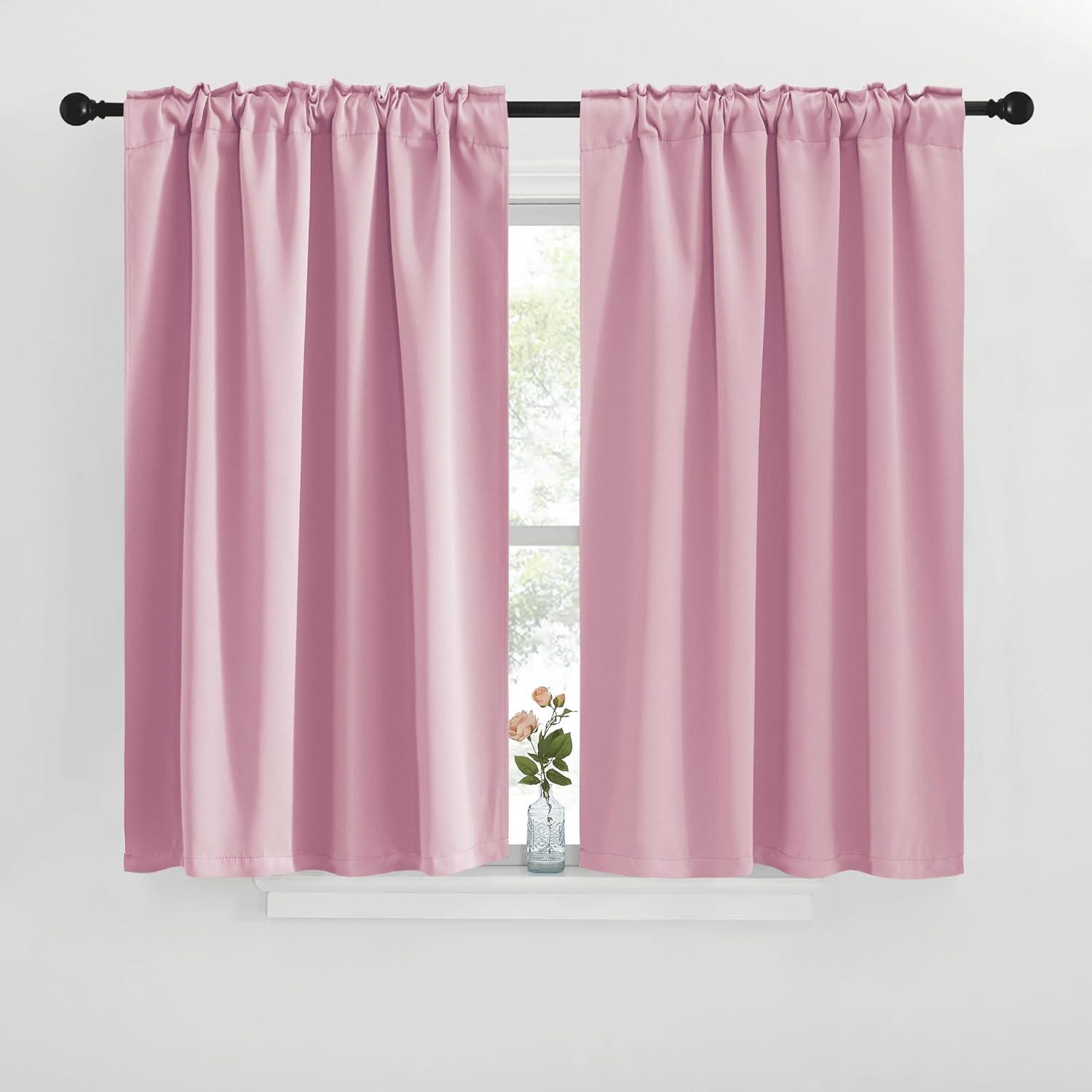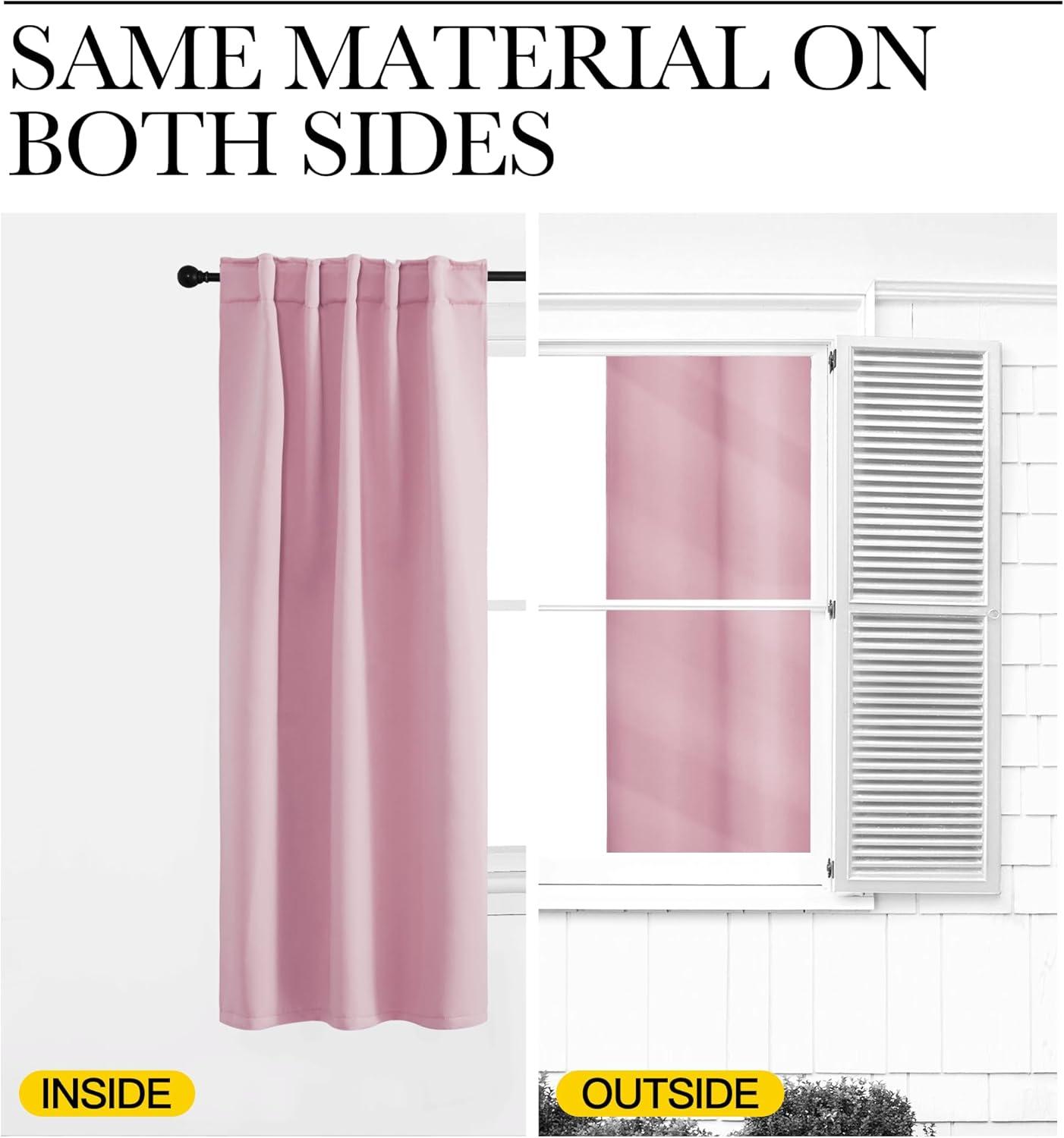 READY-MADE: Set includes 2 blackout curtain panels, each panel measuring 42″ wide x 36″ length. Quality fabric without liner feels soft and heavy. Thread trimmed and wrinkle-free, both sides are the same color.