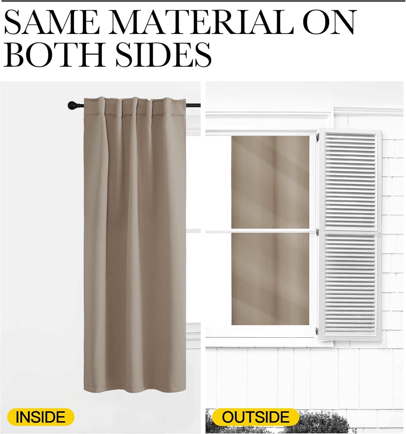 AMAZING FABRIC: The blackout curtain's fabric is super soft and heavy innovative triple-weave polyester fabric. Suitable perfectly for: kitchen, bedroom, living room and any small windows. Same material back as of front makes panels more elegant.
