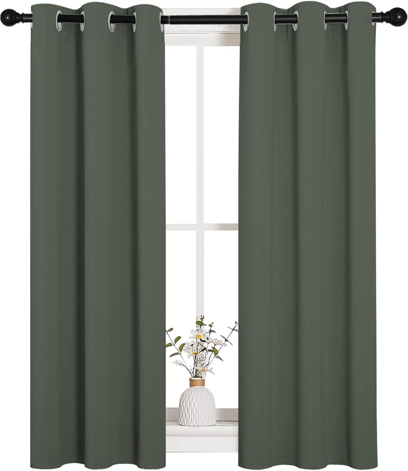 NICETOWN Blackout Curtain Panels for Living Room, Thermal Insulated Solid Grommet Top Blackout Draperies/Drapes for Christmas Window (Dark Mallard, 1 Pair, 29 x 45 inches)