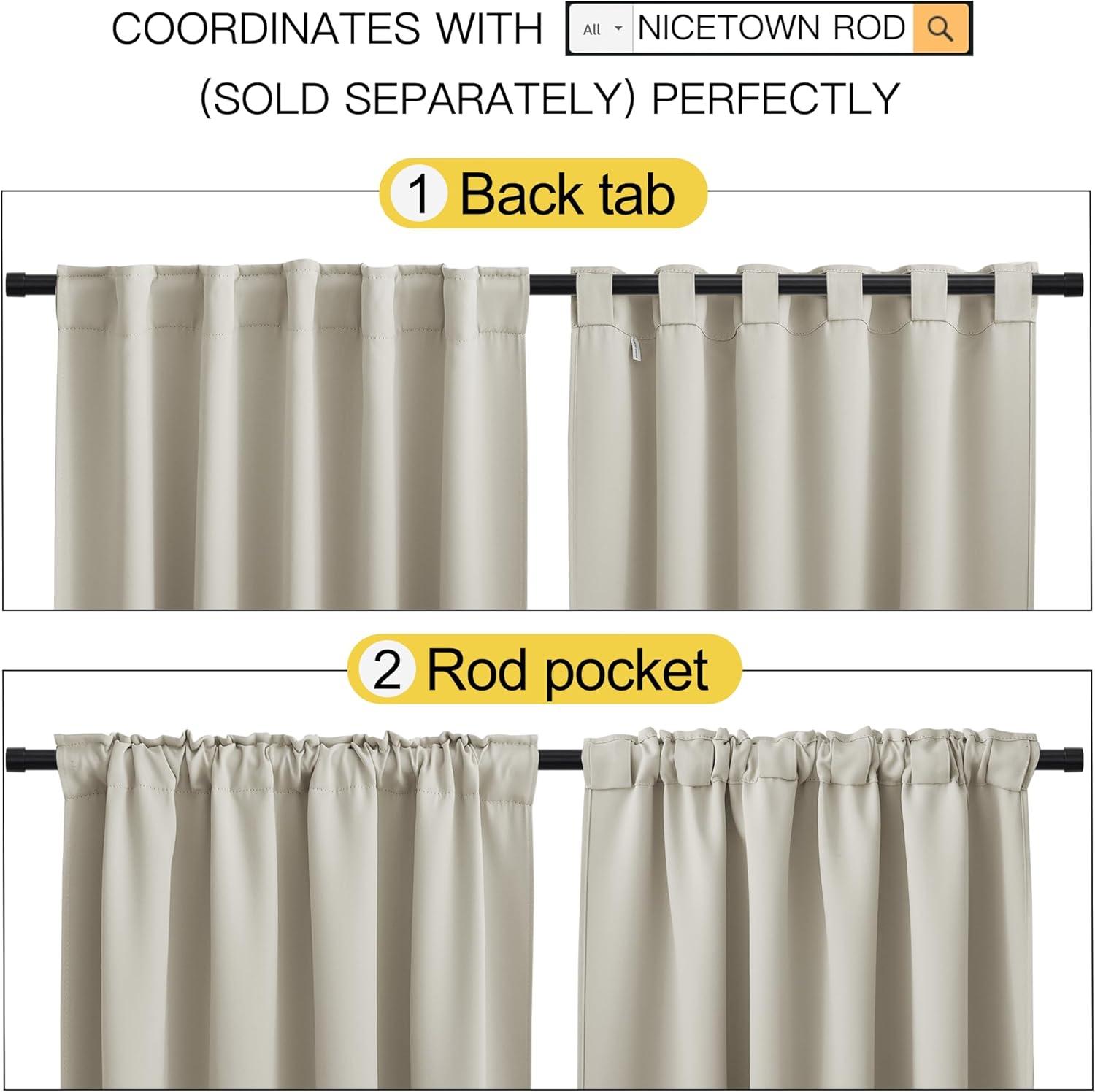 NICETOWN Blackout Curtain Panels Window Draperies – (Natural Color) 34-Inch Wide x72-Inch Long, 2 Pieces, Home Decoration Light & Noise Reducing Window Covering Room Darkening Drapes for Bedroom