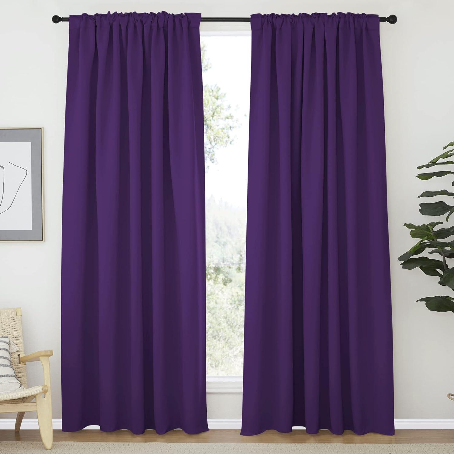 NICETOWN Blackout Curtain Panels Window Draperies – (Royal Purple Color) 62×72 inch, 2 Pieces, Insulating Room Darkening Blackout Drapes for Bedroom, Privacy Doorway Curtain for Door