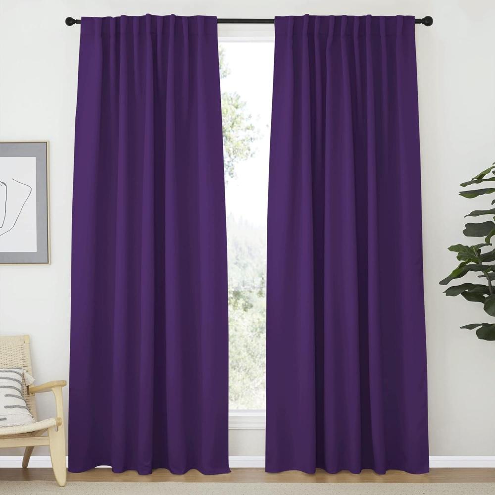 NICETOWN Blackout Curtain Panels Window Draperies - (Royal Purple Color) 62x72 inch, 2 Pieces, Insulating Room Darkening Blackout Drapes for Bedroom, Privacy Doorway Curtain for Door