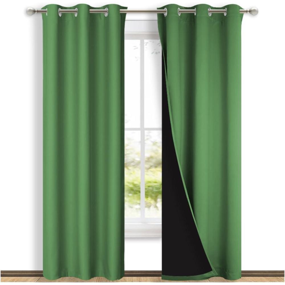 100% BLACKOUT: The real blackout curtains on the market. Sew in black liner backing makes the drapes thick enough to completely keep out the 100% SUNLIGHT and UV RAY. The greatest benefit is to offer you a real dark environment, bringing you a good night's sleep during the day.