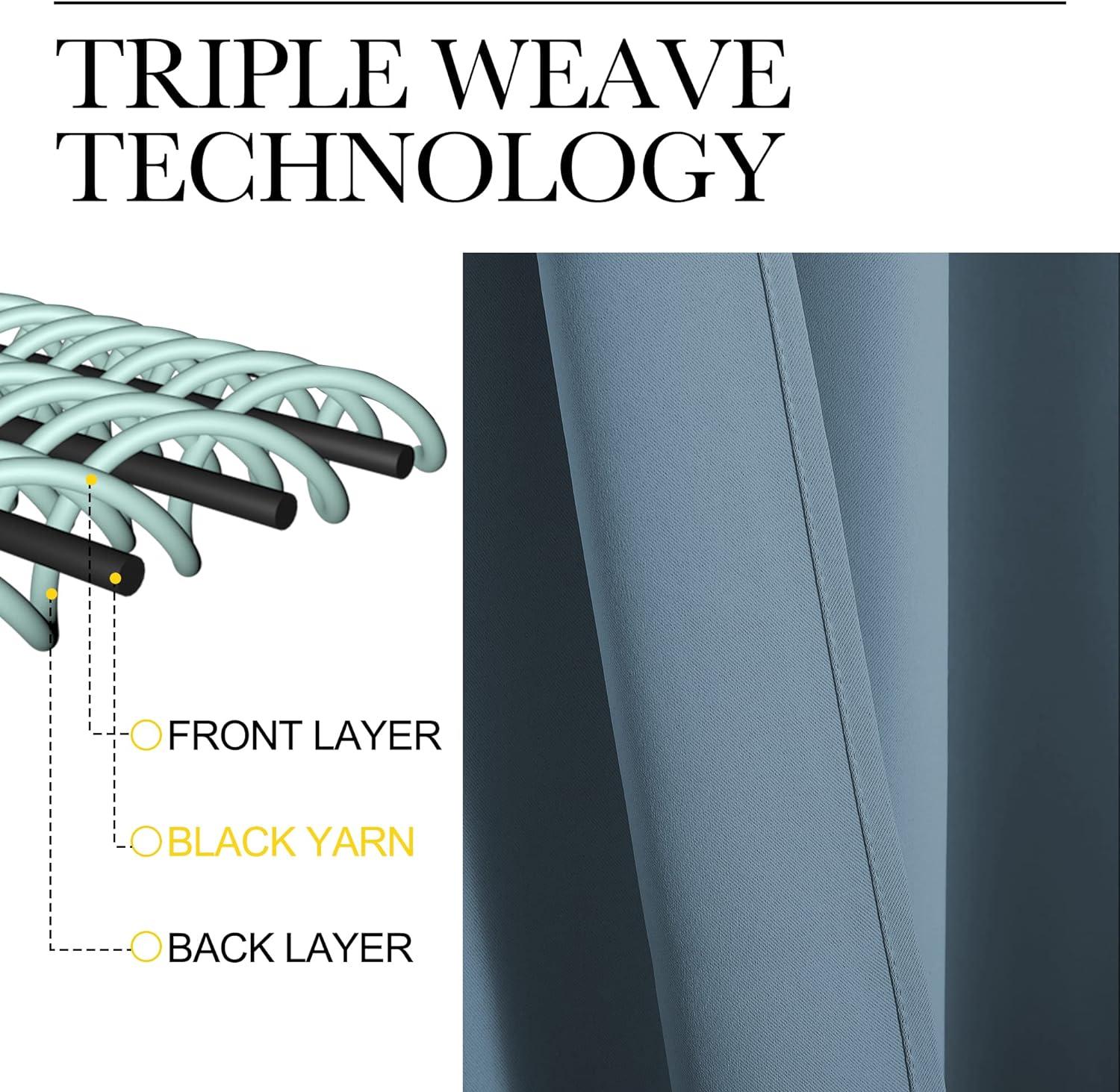 MULTI-FUNCTION: Super heavy and soft Blackout Curtain Panels are very upmarket. Besides, 85%-99% light blocking, thermal insulated, soundproof, Fade-resistant, energy-efficient. Thread trimmed and wrinkle-free, both sides are the same color.