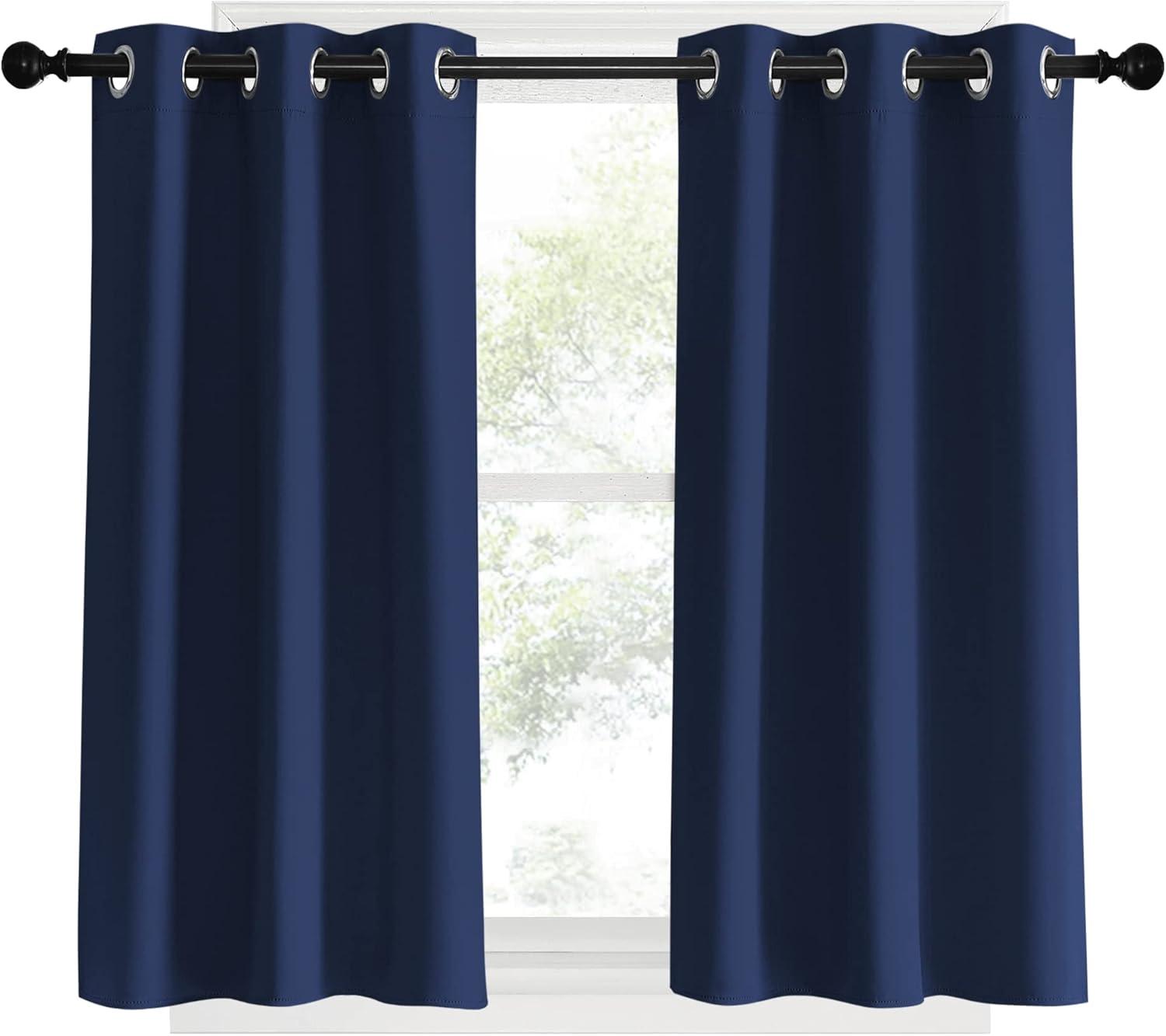 NICETOWN Blackout Curtains & Drapes for Kitchen, Navy, 1 Pair, 34 x 40 Inch, Thermal Insulated Solid Grommet Top Blackout Panels/Draperies for Bedroom/Living Room