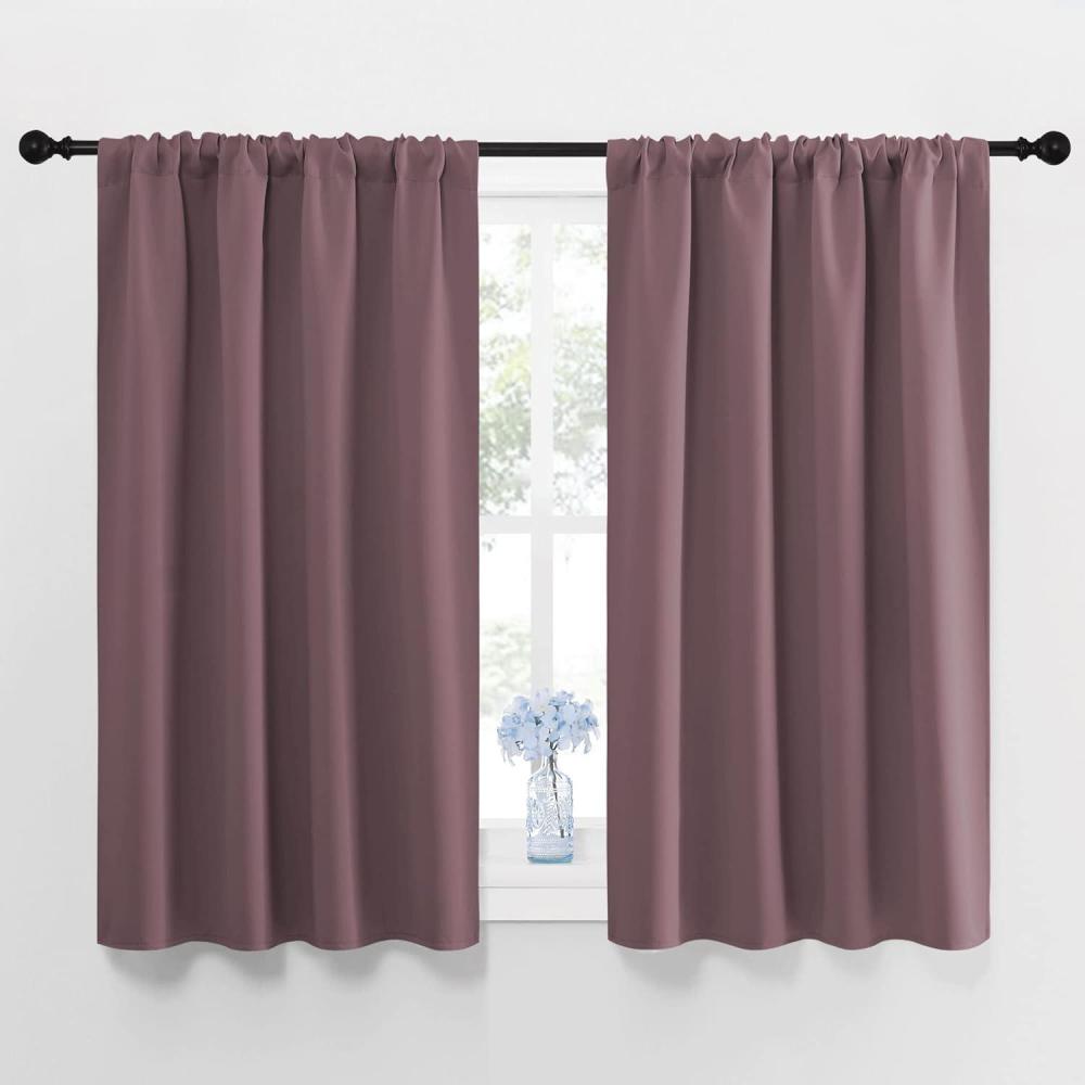NICETOWN Blackout Curtains for Bedroom, Home Decorations Thermal Insulated Solid Rod Pocket Blackout Drapes for Cafe, Nursery (Dry Rose, 1 Pair, 42 x 48-inch)