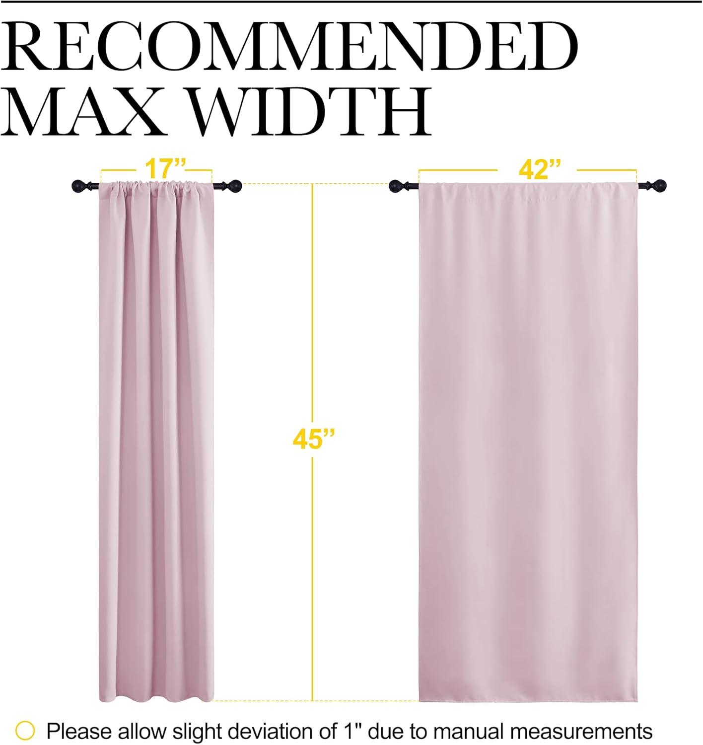 ELEGANT DESIGN: 2 panels per package. Each Blackout Curtain Panel measures 42 inches wide x 45 inches long. The NICETOWN drapery is constructed with rod pocket, fitting the curtain rod of your choice up to 2 inches in diameter, making the curtains easy to install and slide.