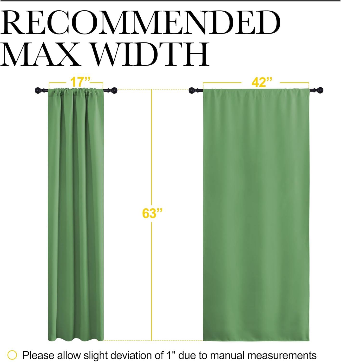 ELEGANT DESIGN: 2 panels per package. Each Blackout Curtain Panel measures 42 inches wide x 63 inches long. The NICETOWN drapery is constructed with rod pocket, fitting the curtain rod of your choice up to 2 inches in diameter, making the curtains easy to install and slide.