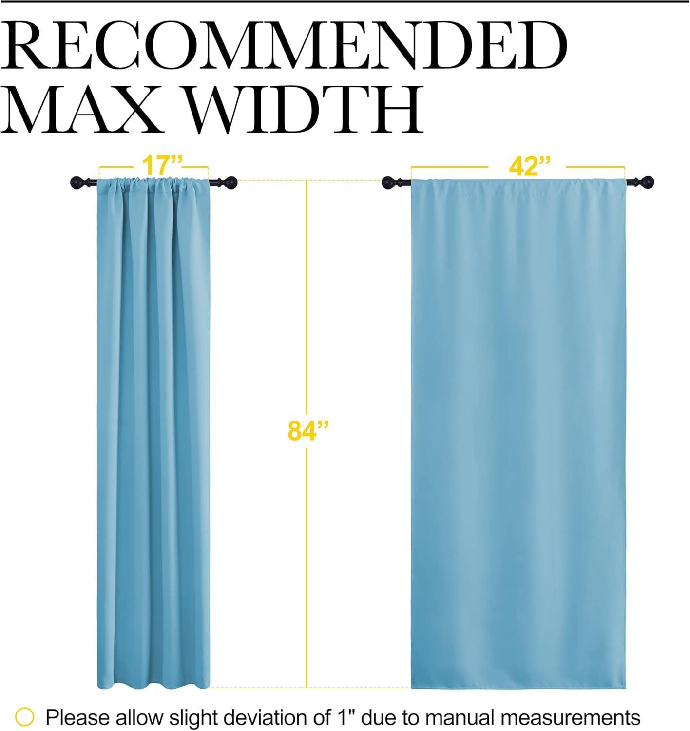 ELEGANT DESIGN: 2 panels per package. Each Blackout Curtain Panel measures 42 inches wide x 84 inches long. Super heavy and soft Blackout Curtain Panels can block 85%-99% light and UV rays. Thread trimmed and wrinkle-free, both sides are the same color.
