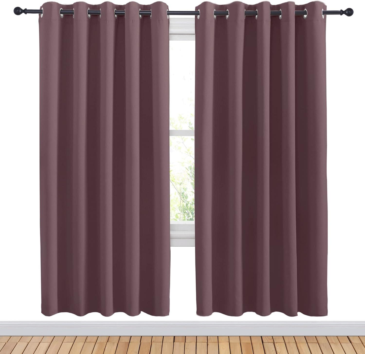 NICETOWN Blackout Draperies Curtains for Kids Room, Window Treatment Thermal Insulated Solid Grommet Blackout Drape Panels for Bedroom (Dry Rose, Set of 2, 70 by 72 inches)