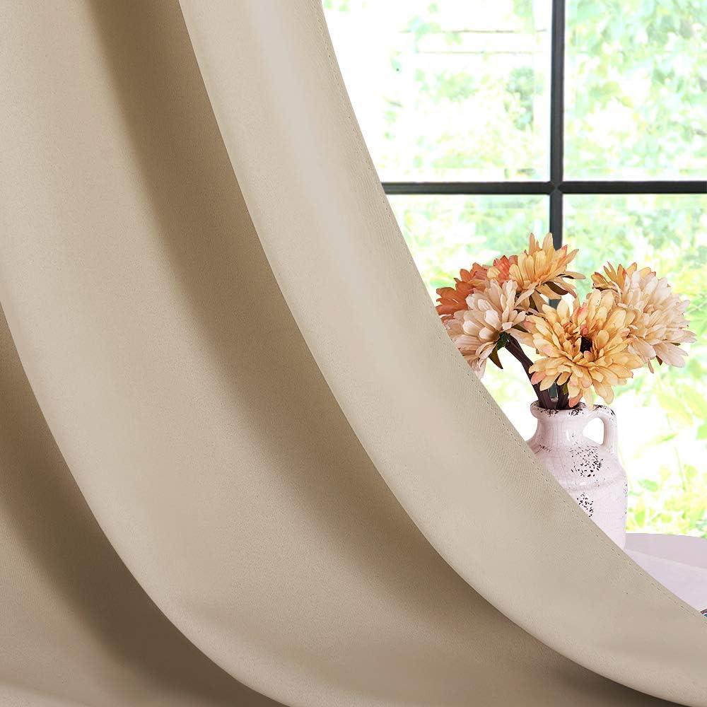 NICETOWN Blackout Farmhouse Curtains, Biscotti Beige, Set of 2, 34 by 80 Inch, Thermal Insulated Solid Grommet Vertical Drapes Room Darkening Window Treatments for Bedroom