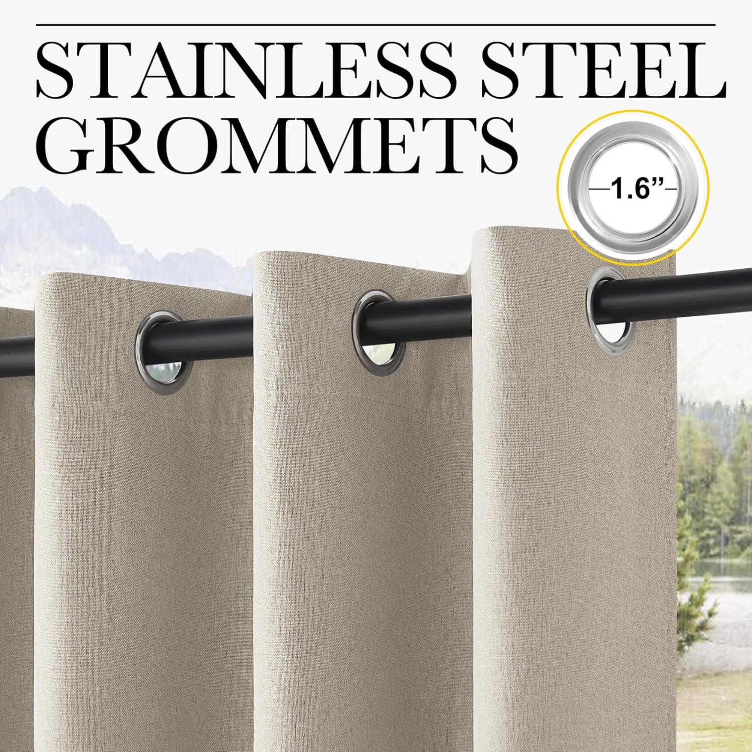 imageNICETOWN Blackout Outdoor Curtains for Patio Waterproof 2 Panels 100 Light Blocking Linen Curtains Weatherproof IndoorOutside Privacy Sun Shades for Gazebo Porch Balcony W52 x L84 inch GreyNatural