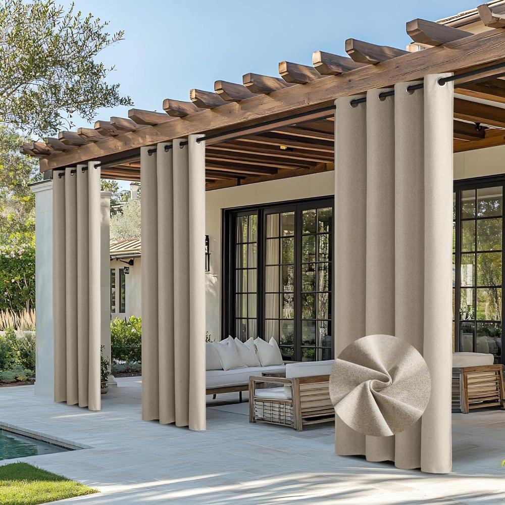 Waterproof Fabric: Pre-treated with waterproof technology to repel rain and spills effortlessly. Surface moisture beads up and rolls off, keeping curtains dry without stiffening the soft linen-like material. Ideal for rainy patios or humid bathrooms.