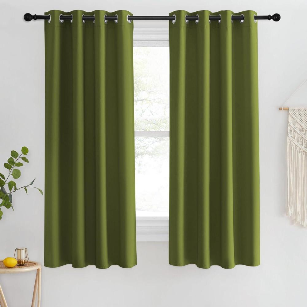 NICETOWN Blackout Short Curtain 63 inches Long for Windows, Thermal Insulated Curtain Grommet Room Darkening Window Treatment for Bedroom/Living Room, 1 Panel, W46 x L63, Olive Green