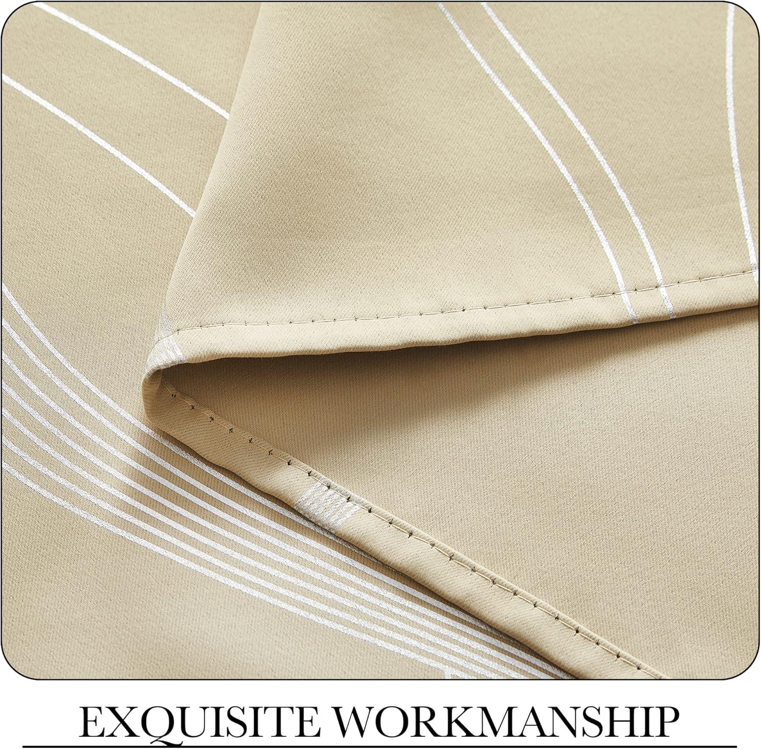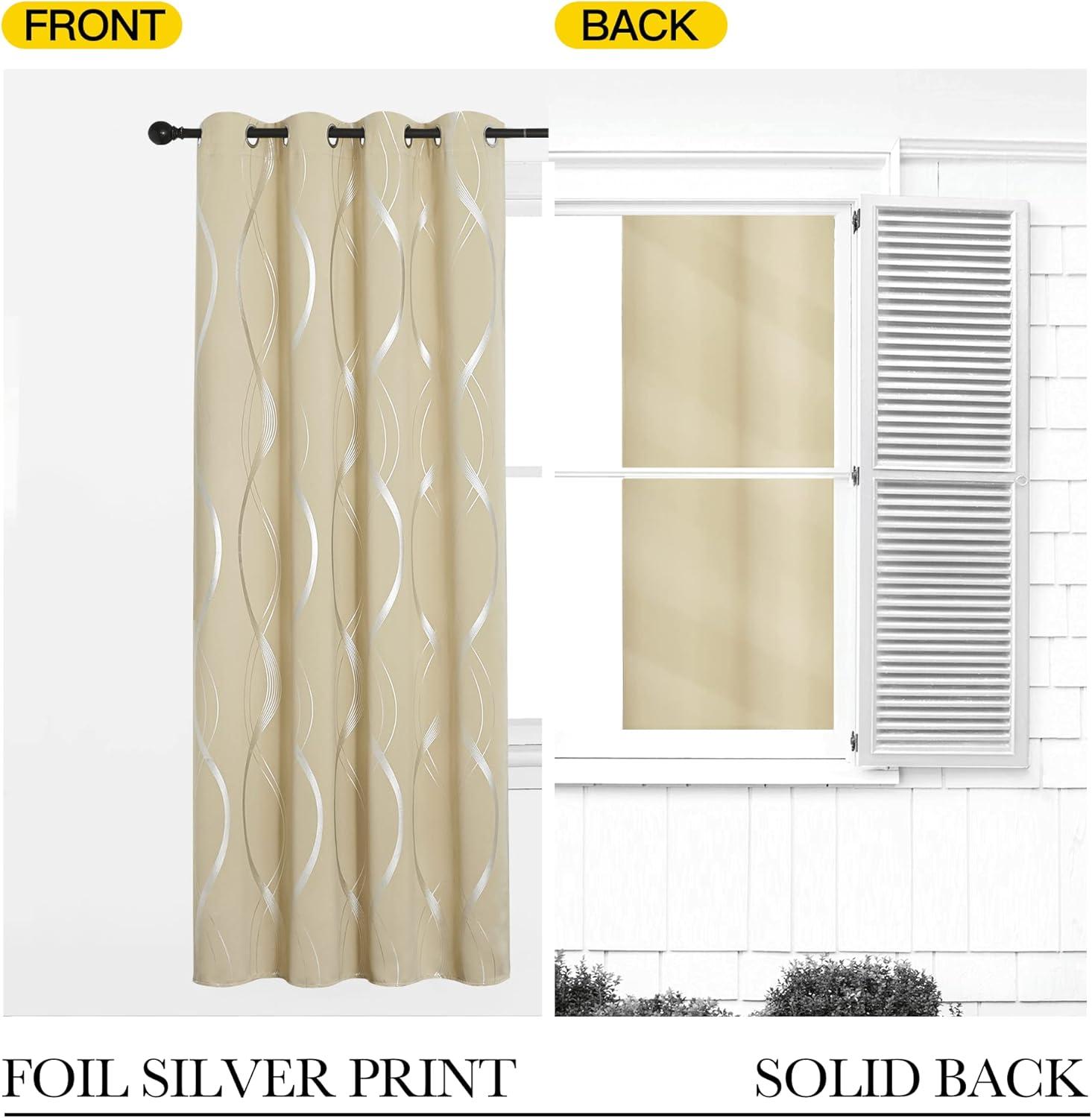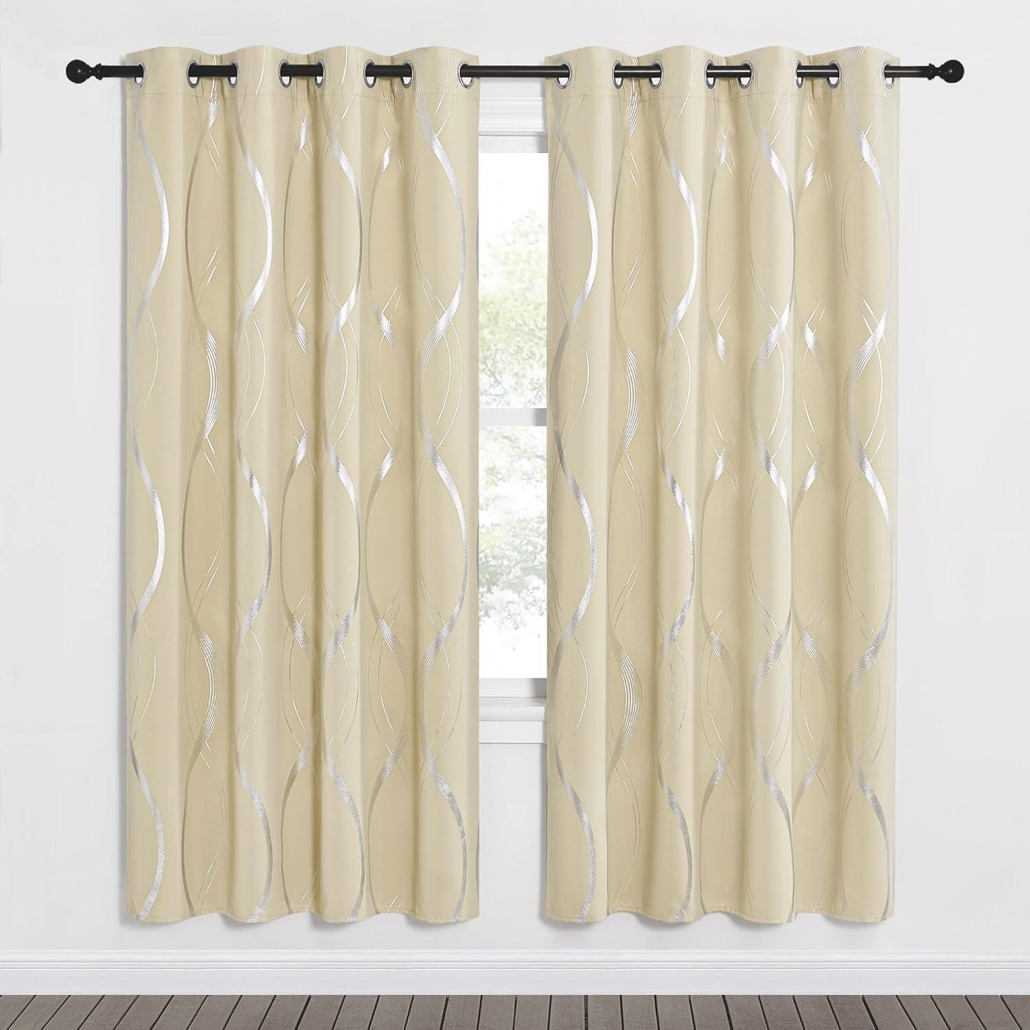 imageNICETOWN Blackout Short Curtains Panels for Bedroom Microfiber Noise Reducing Thermal Insulated Wave Line Foil Print Design Drapes for Office Classroom Stone Blue 2 Panels 52 x 54 Inch1  Beige