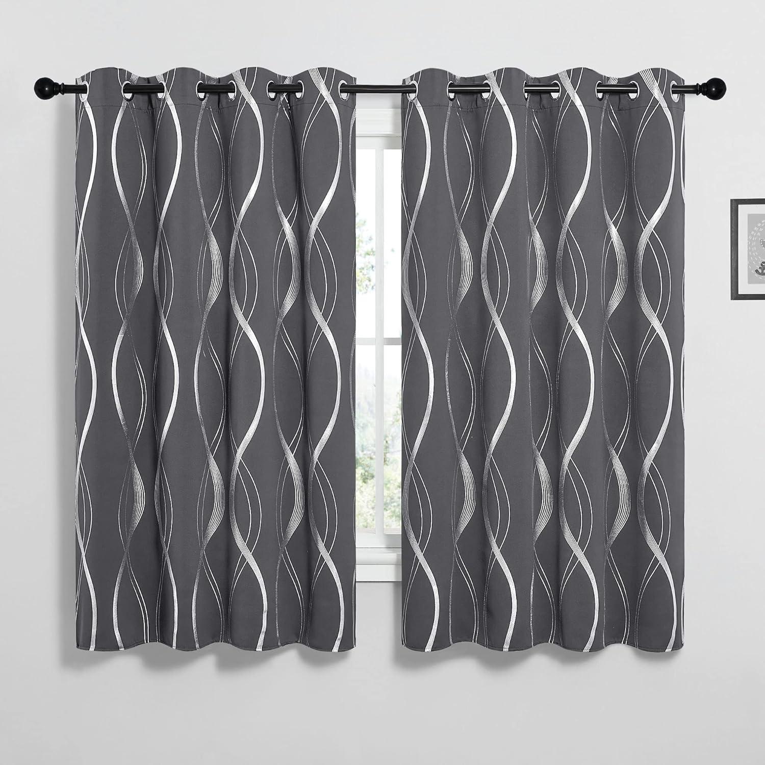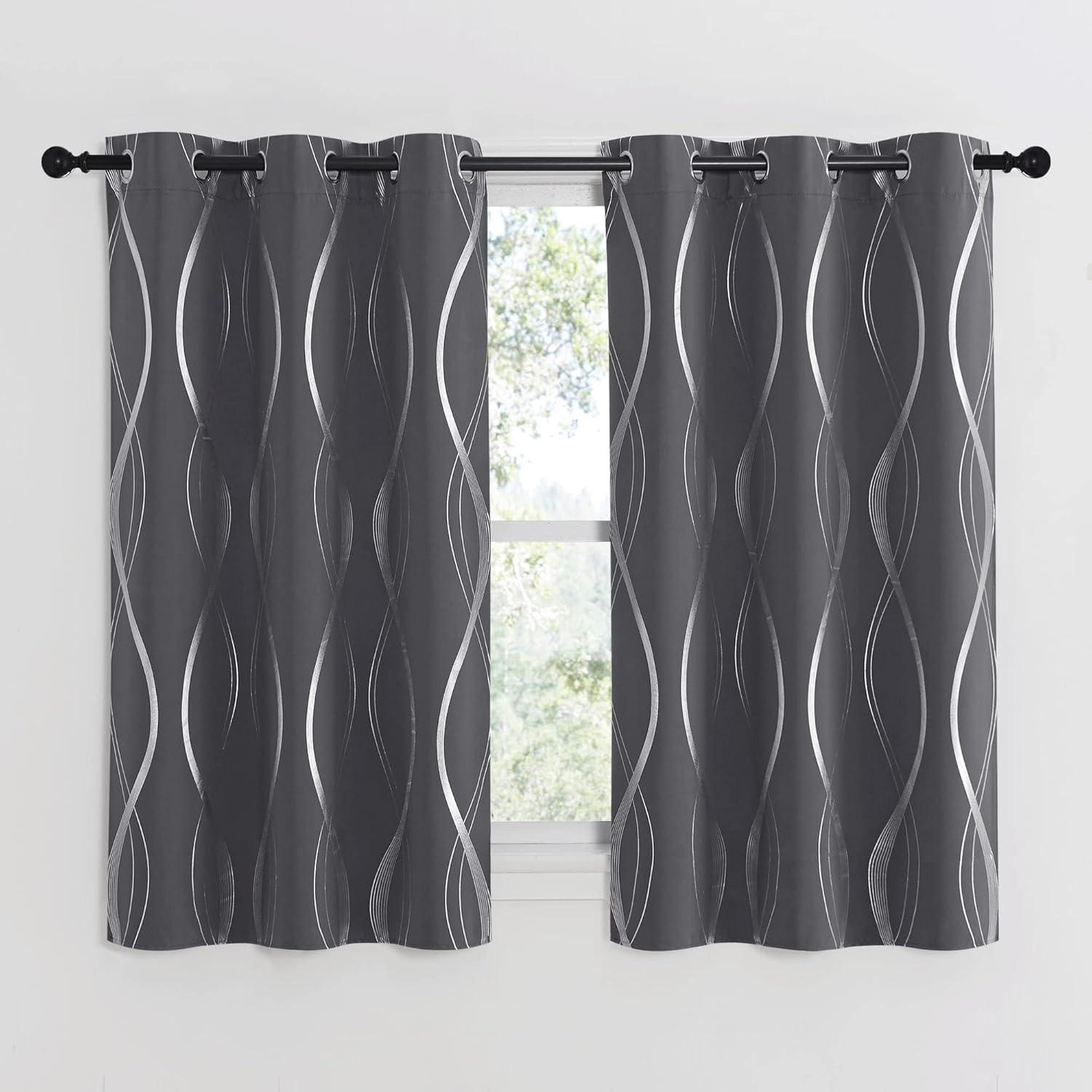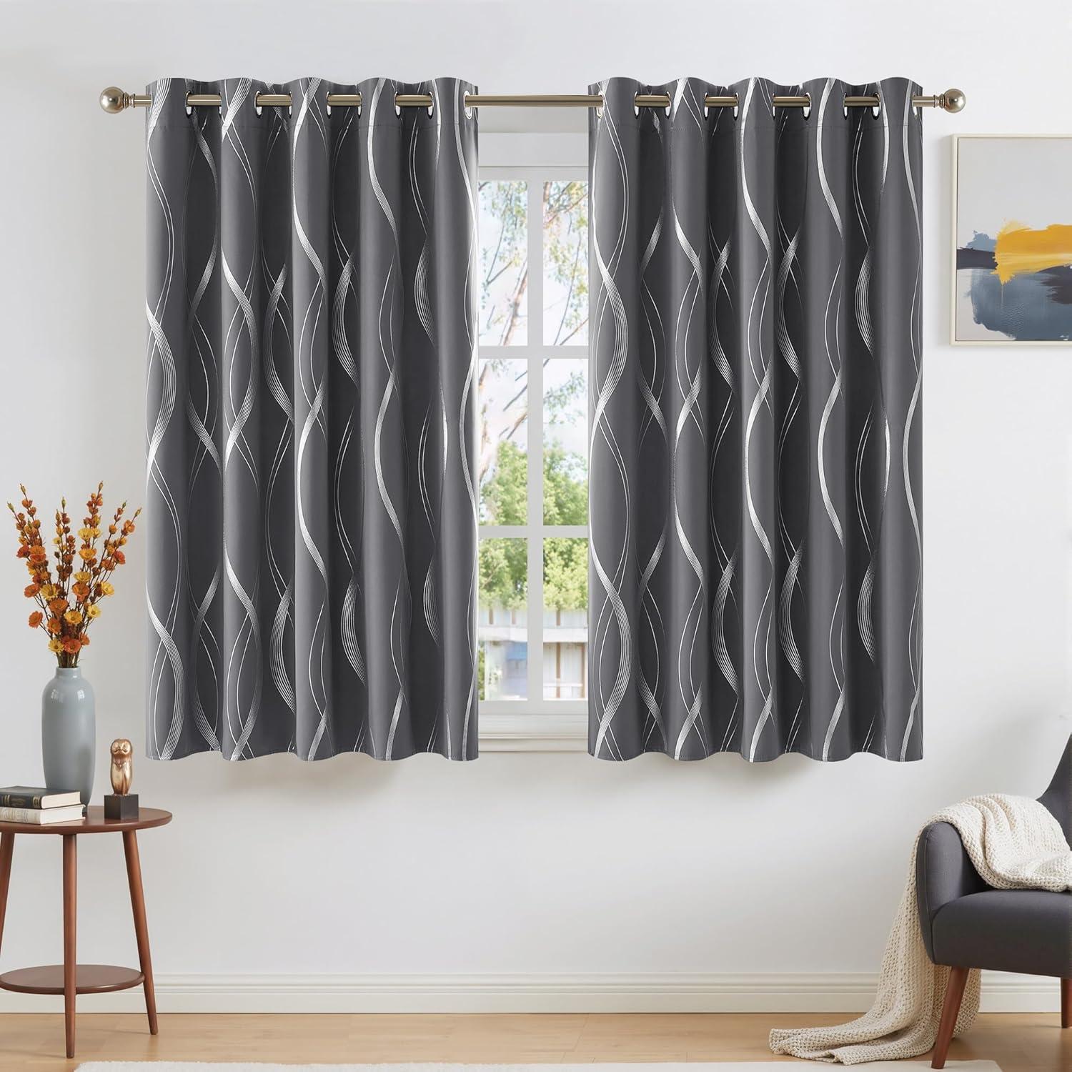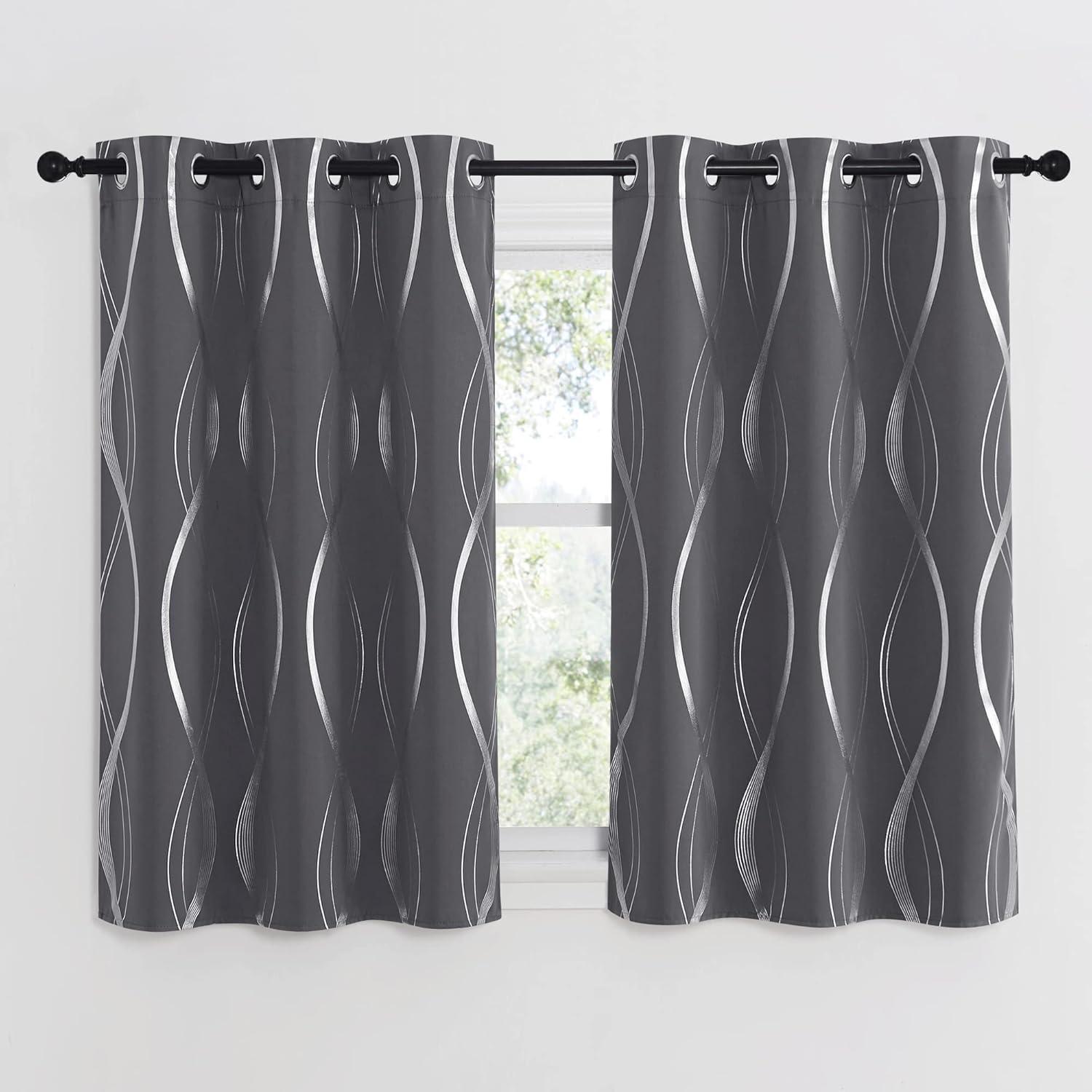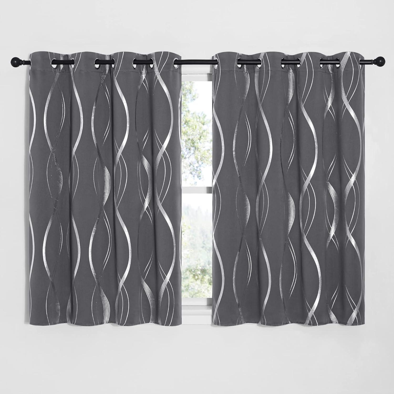 NICETOWN Blackout Short Curtains Panels for Bedroom, Microfiber Noise Reducing Thermal Insulated Wave Line Foil Print Design Drapes for Office, Classroom (Stone Blue, 2 Panels, 52 x 54 Inch)(1 – Grey)